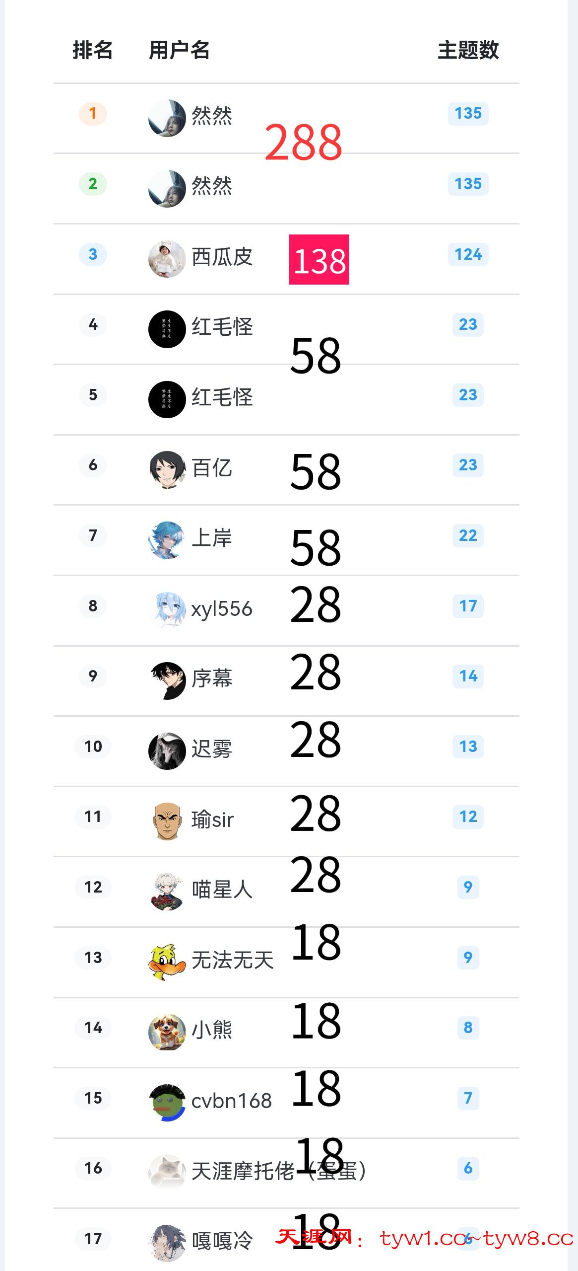 三、公布五月优秀发帖者楼主奖励 有以下名单的楼主 - 联系阿飛处理奖励 请按照排名依次处理奖励:288~18!