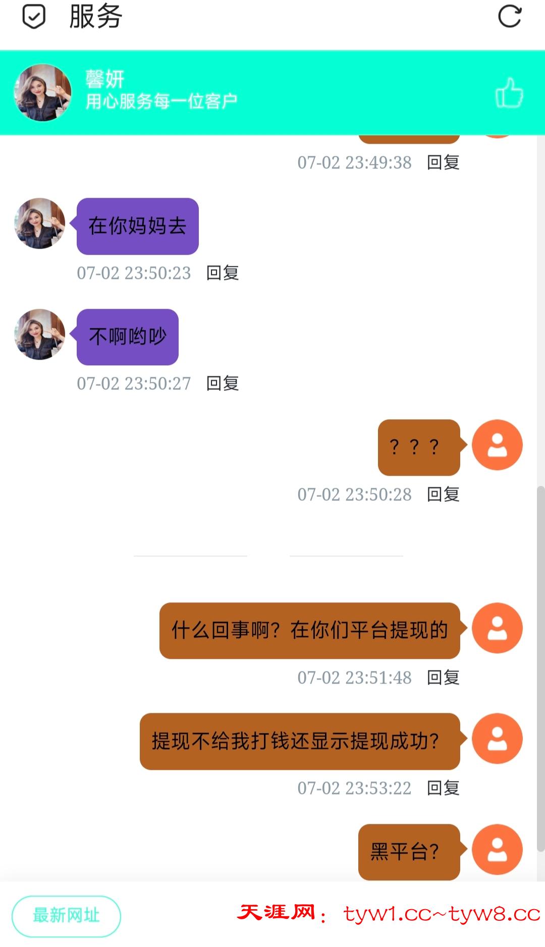 这个平台这两天才玩的,前面提现一千 两千都给了,就是昨天上了差不多一千提两千直接给我空汇了,提现显示成功Go没有收到币,问平台客服直接开骂了,每次赢个一千就提给平台整破防了。3890.com 0239.com