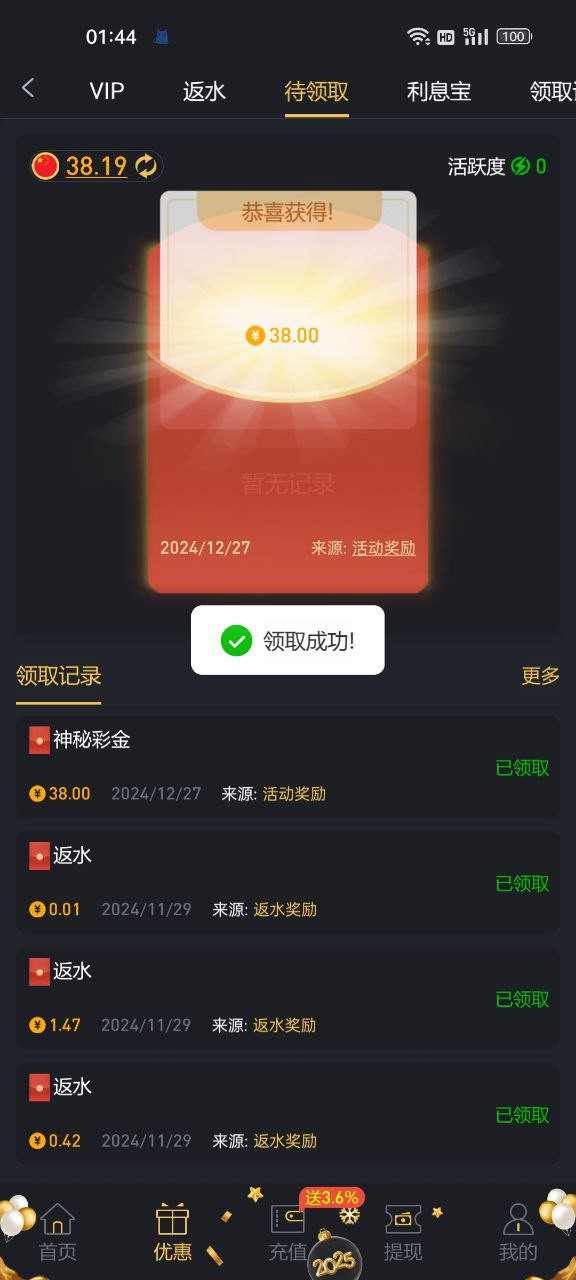 38撸了300到账