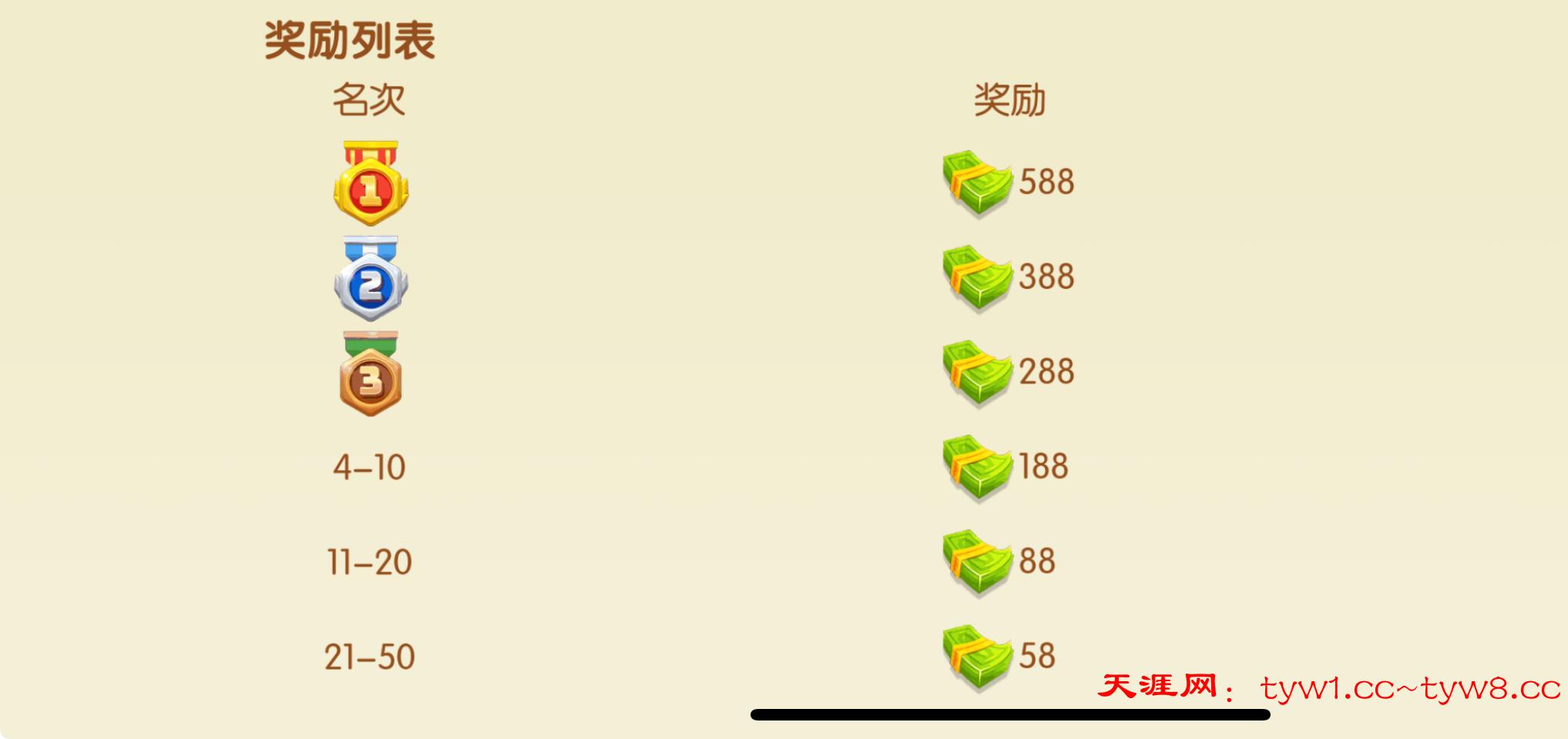 每晚7-8点打榜比赛,得提前报名参赛,否则到点没有比赛资格,前50名都有奖金58-588,上榜的奖励结束后会派发到银行里
