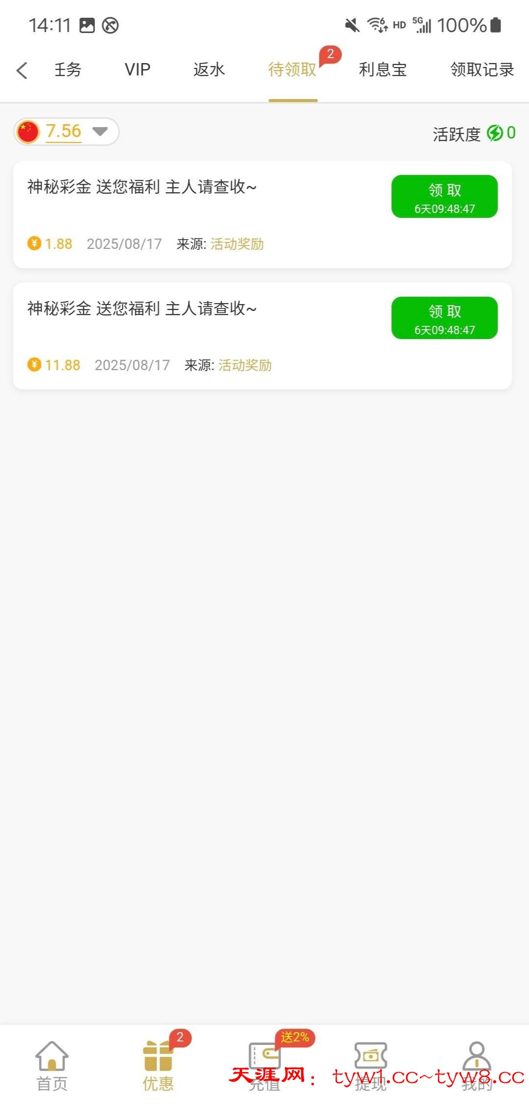 有号的登录看看,优惠里面自助领取。链接 1348.com