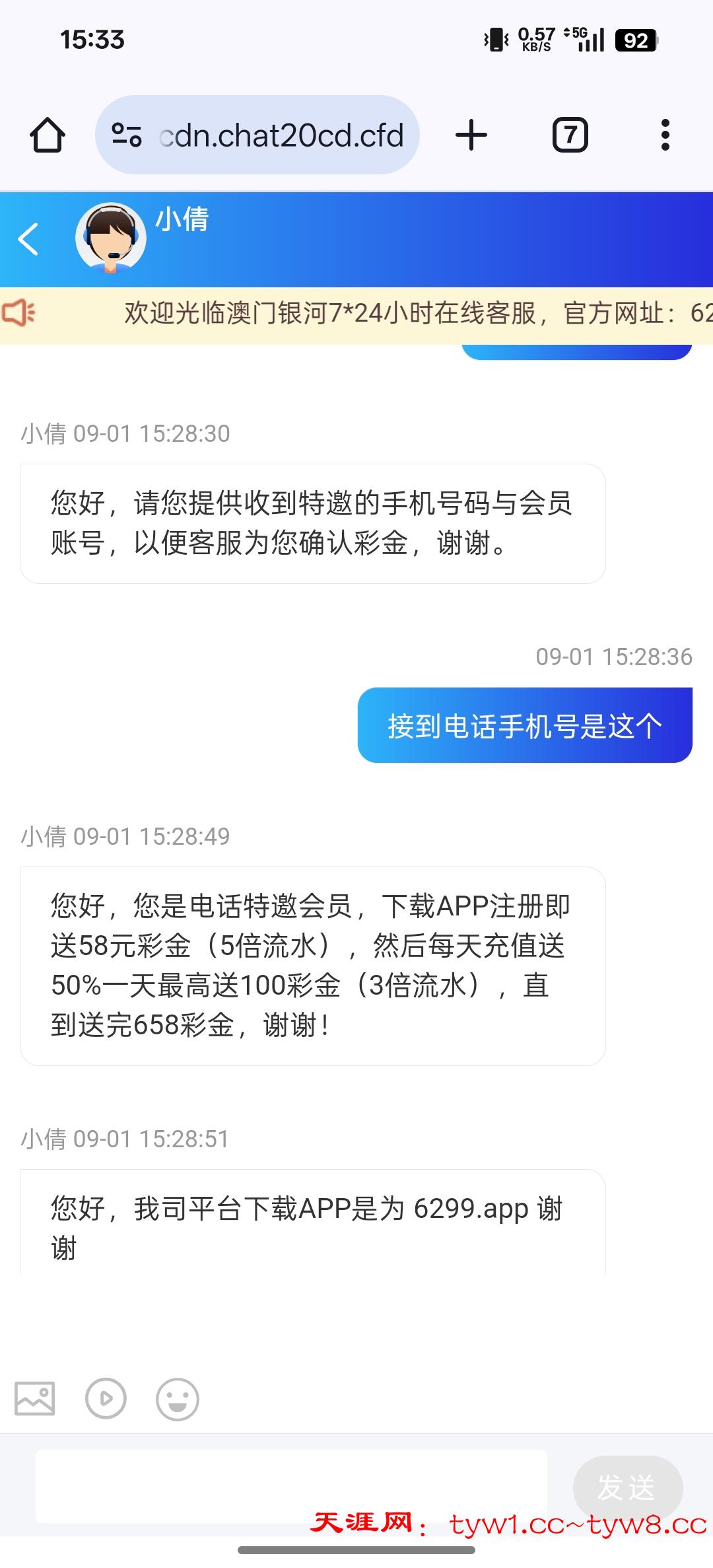 打开客服发手机号是特邀会叫你下载app登录,送58,我是碰瓷了