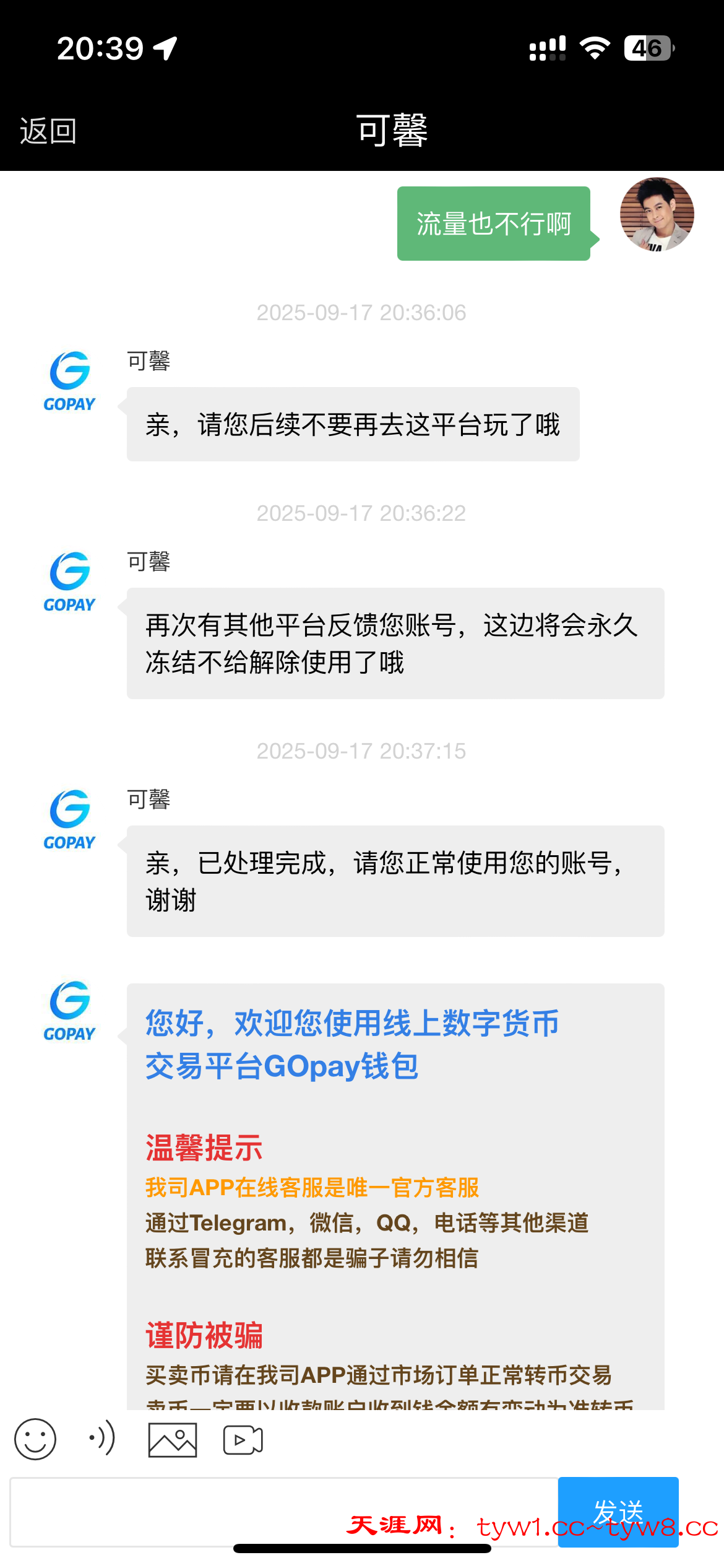 前一段时间不是有人发这个白嫖项目吗 我当时提了290 然后有的老哥被黑了 今天我早上提200到gopay 然后出售到了晚上结果发现出售不了 客服说让我找平台 她们给我说你发提现截图到那个项目评论区了 还说你们社区全是狗 骂我是白嫖狗 后来我找客服软磨硬泡 加上找常玩的平台 给我解开了 当时撸过那个项目的老哥注意了! 当时用什么钱包提现的 去看看你的钱包还可以正常使用不 以免发生提进去结果钱包被这个狗平台封了 go钱包客服都说以后不要去这种台子玩了!