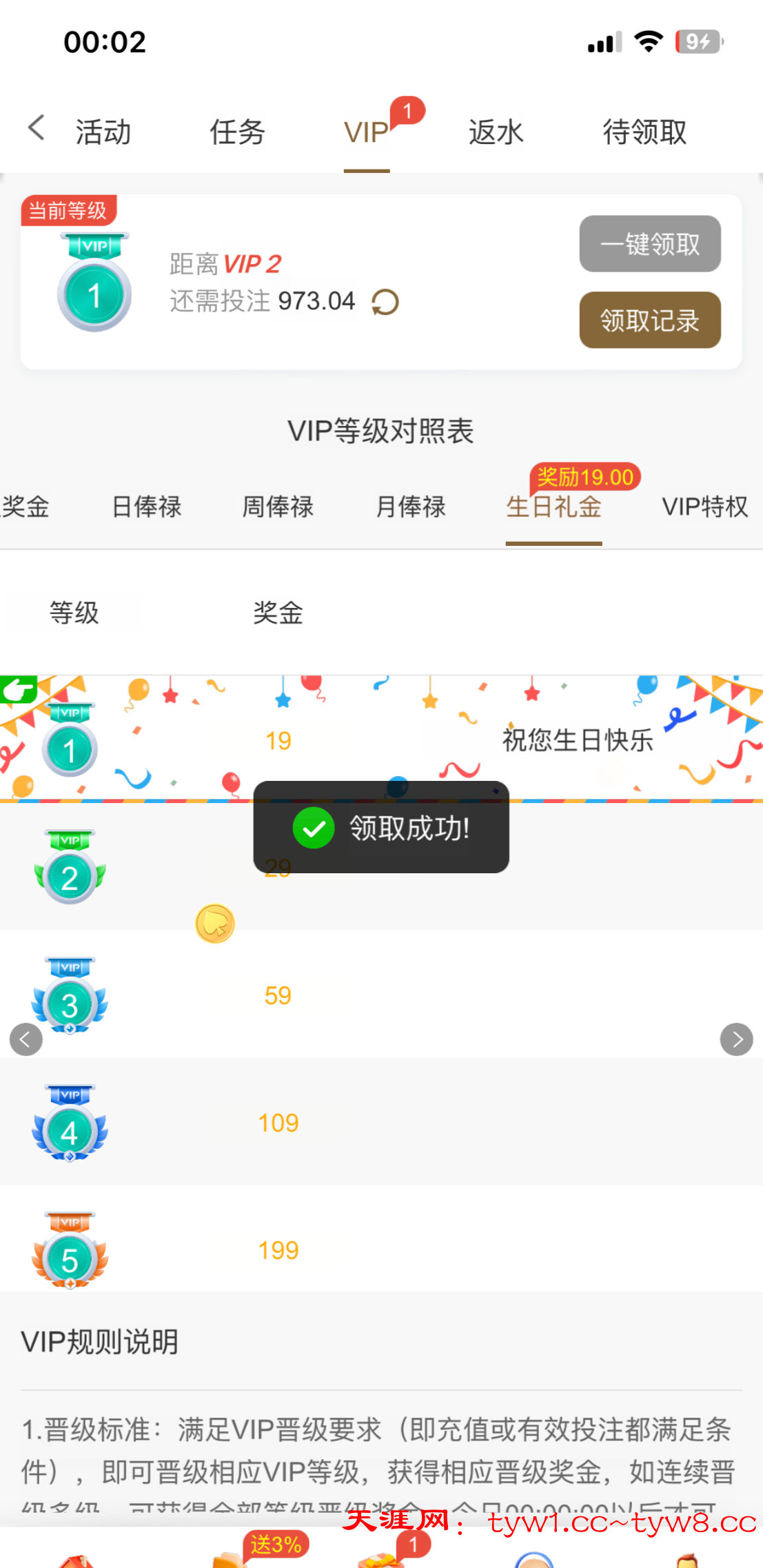 玩过的有v1就能领 在设置里面设置生日日期 设置成19号 明天就能领 我昨天设置的今天领到了 6299.com