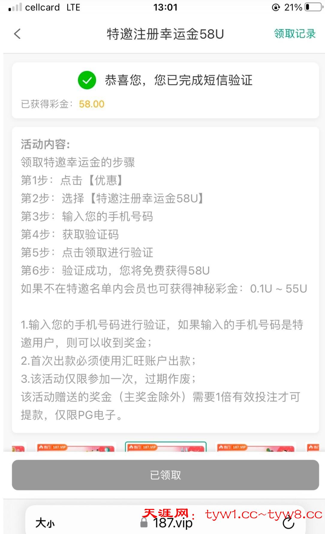 有汇旺和菲律宾+855手机号可以去验证看一下,我没有收到短信,朋友收到告诉我的,然后我验证了一下号码领到58u,得吃500u