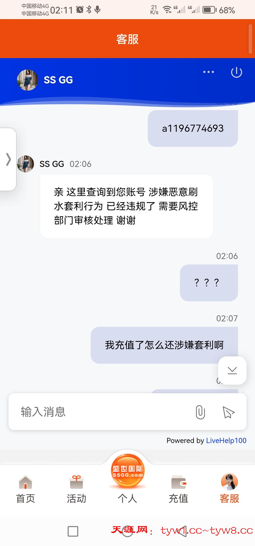 大家避雷啊 黑台网址ssgg.com 不要充值