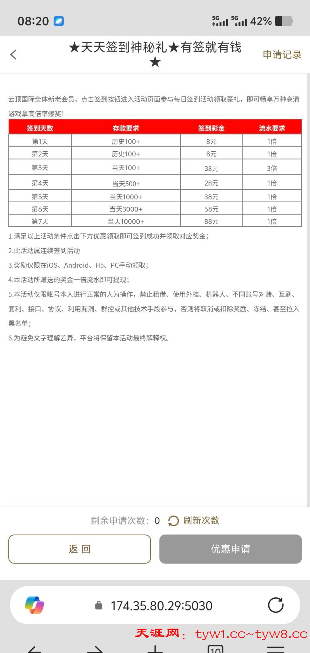 8847.com,充值过100都可以右下角申请签到彩金