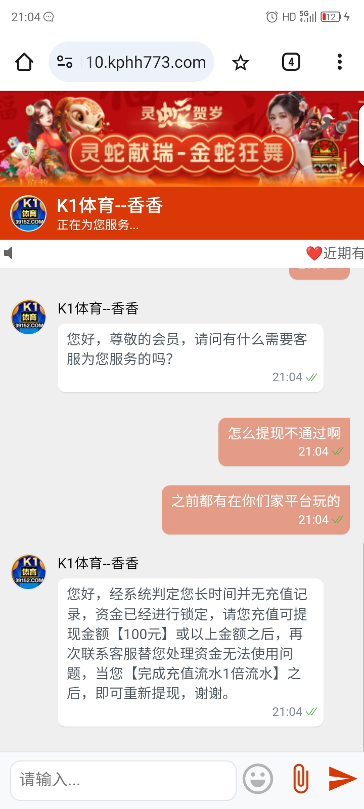 我之前打600,要我充600,充了出款了