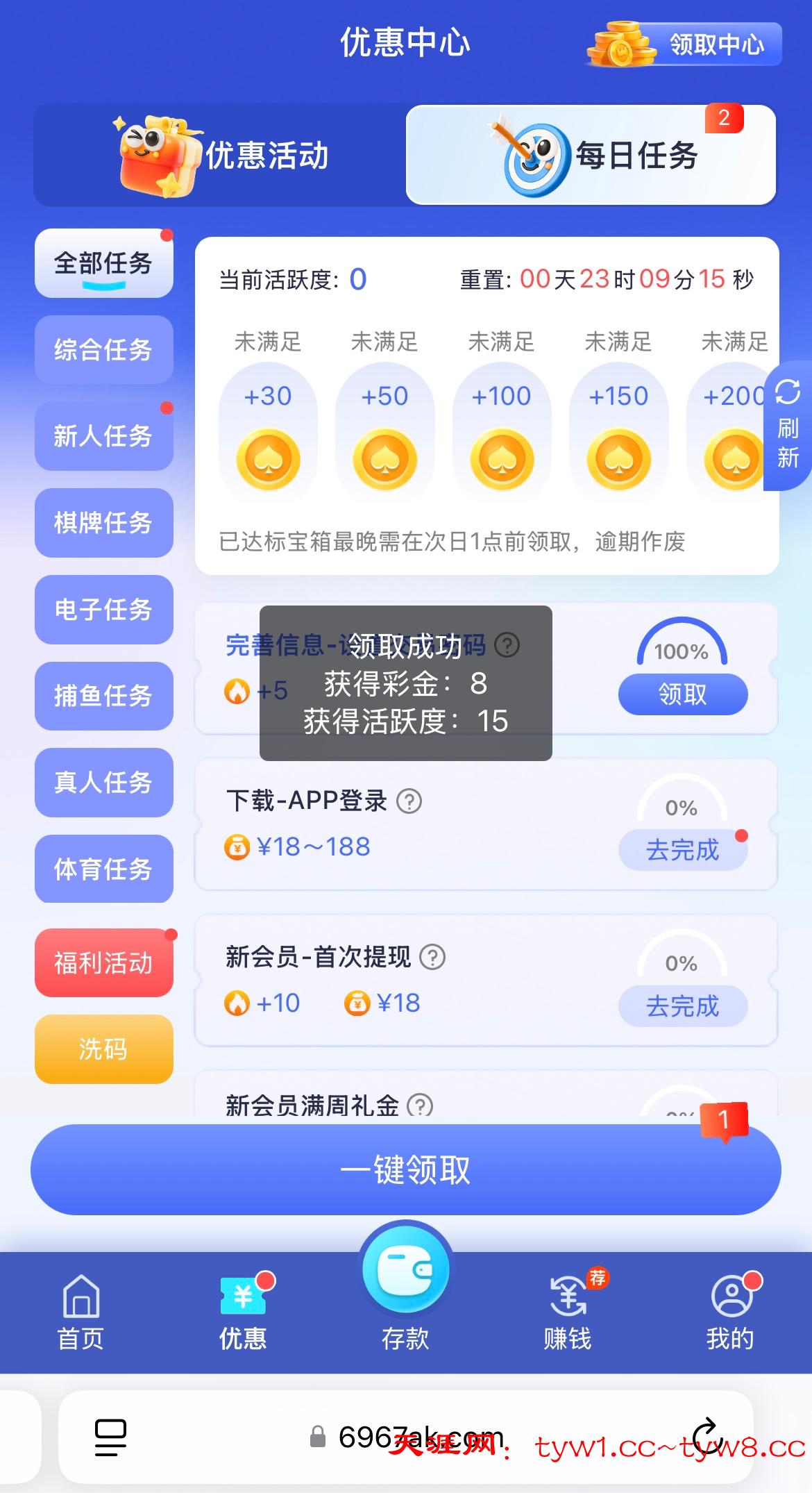 注册完善信息 优惠任务领取