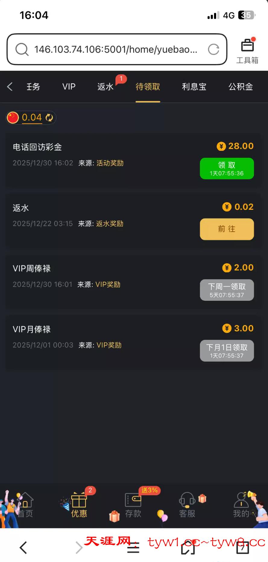 接到电话上线联系客服领取的,有充值过的,可以去碰下链接6367.com