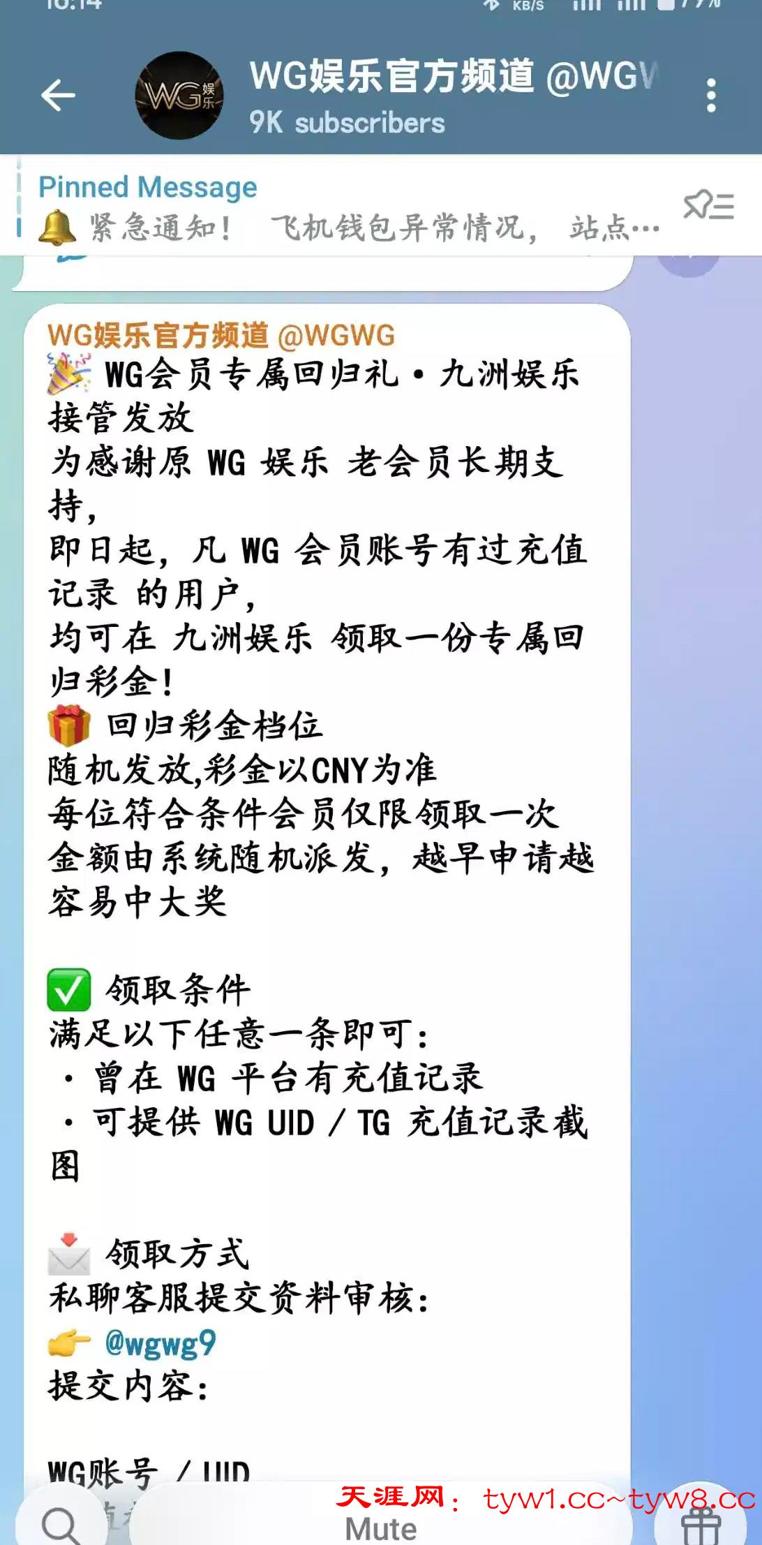 原飞机wg改版成九州,有过充值记录的,领取回归彩金,就是那个之前经常抢红包的wg。领取方式如图。客服✈️@wgwg9