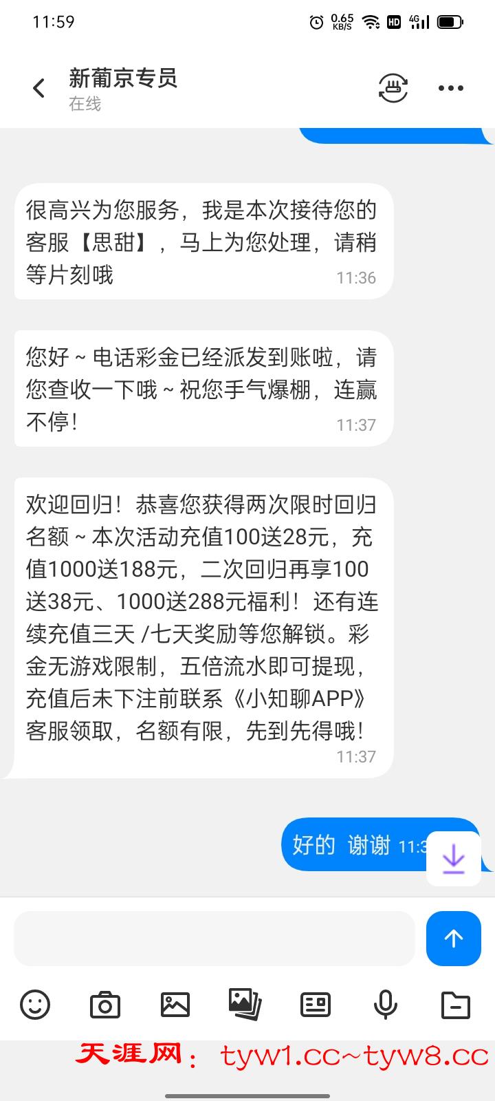 接到电话 找客服加小知聊领取神秘彩金我领取到18