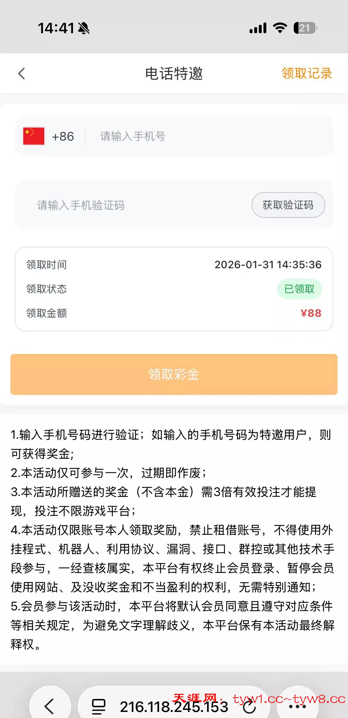 电话特邀,网址ld03.com,优惠里面短信验证