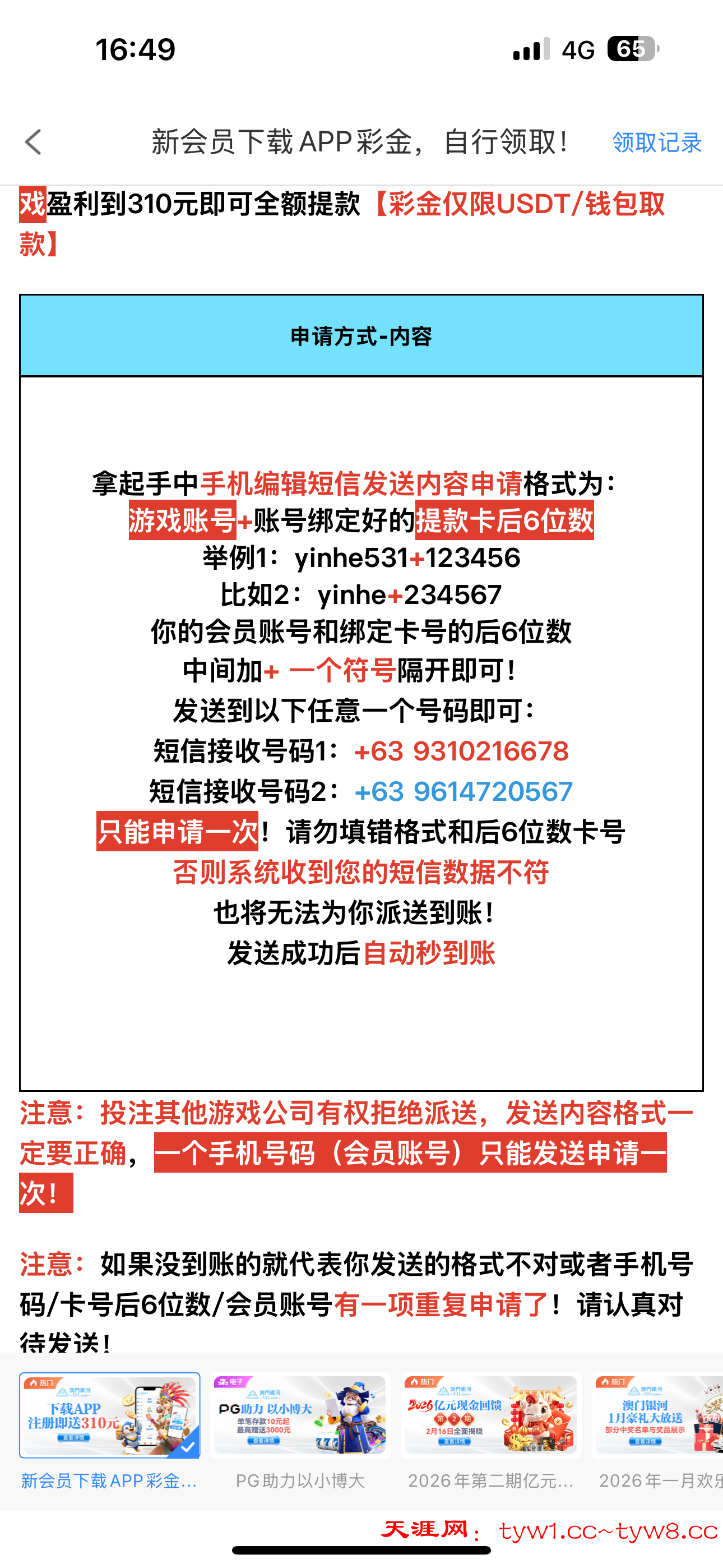 一定要先下载APP再注册账号,然后发送短信是秒到的,能不能提款?目前还不知道,各位都试一下吧,能提款的话给个反馈,谢谢