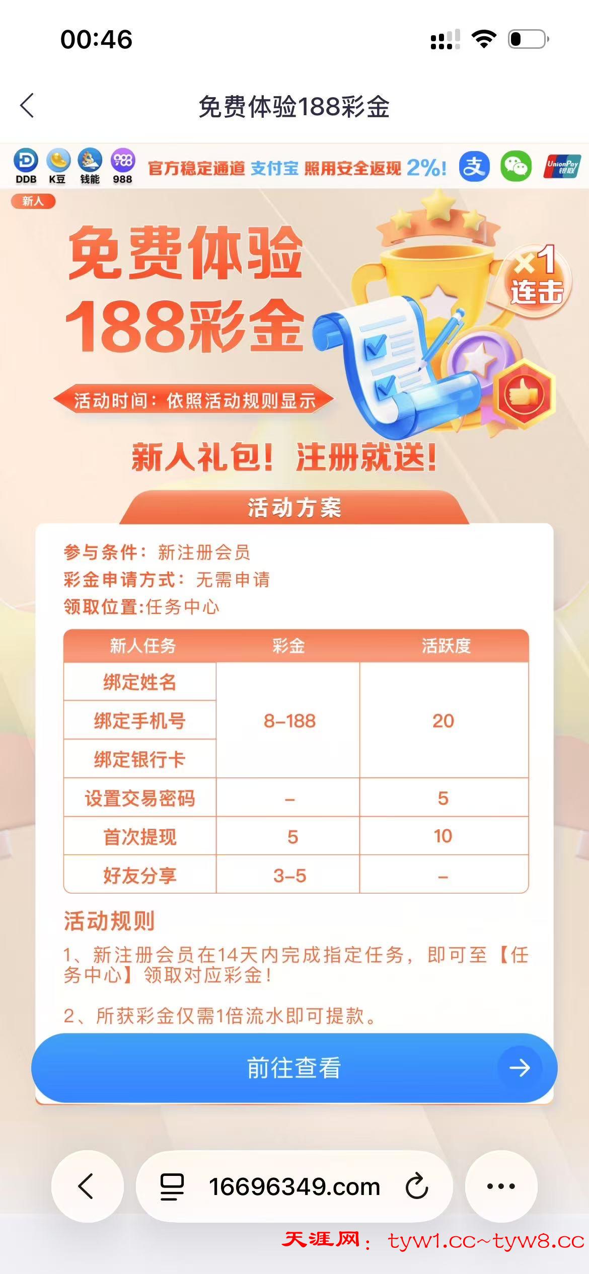 注册了直接绑定银行卡就可以随便绑定手机号然后去每日任务领取,还有一个