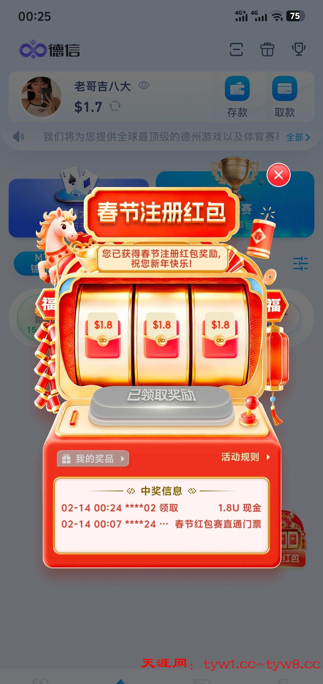 最少1u+,可以接码干,50u起提,领到注册红包可以报名今天的春节比赛,第一名5000u。