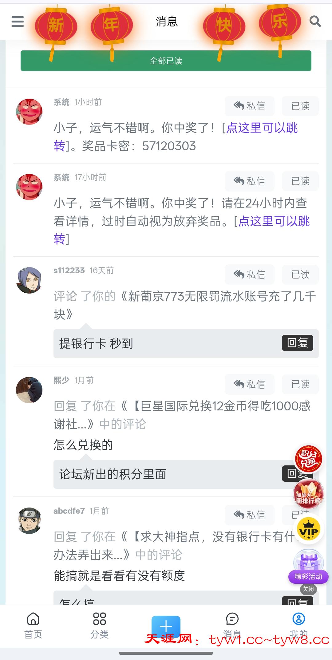 • 天涯论坛我期期中奖,中的心烦 1月前