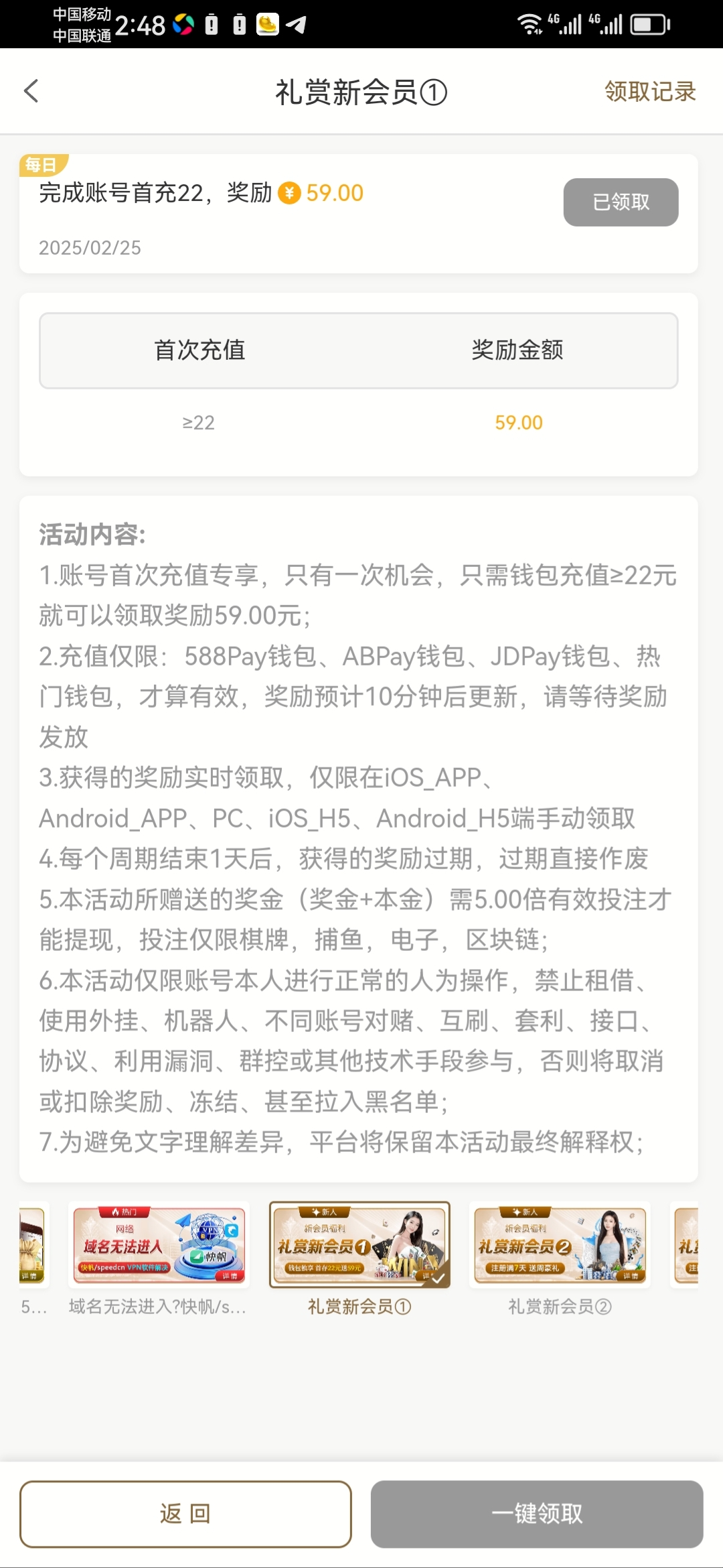 玛德领了22查打了300又全部送回去,流水不够