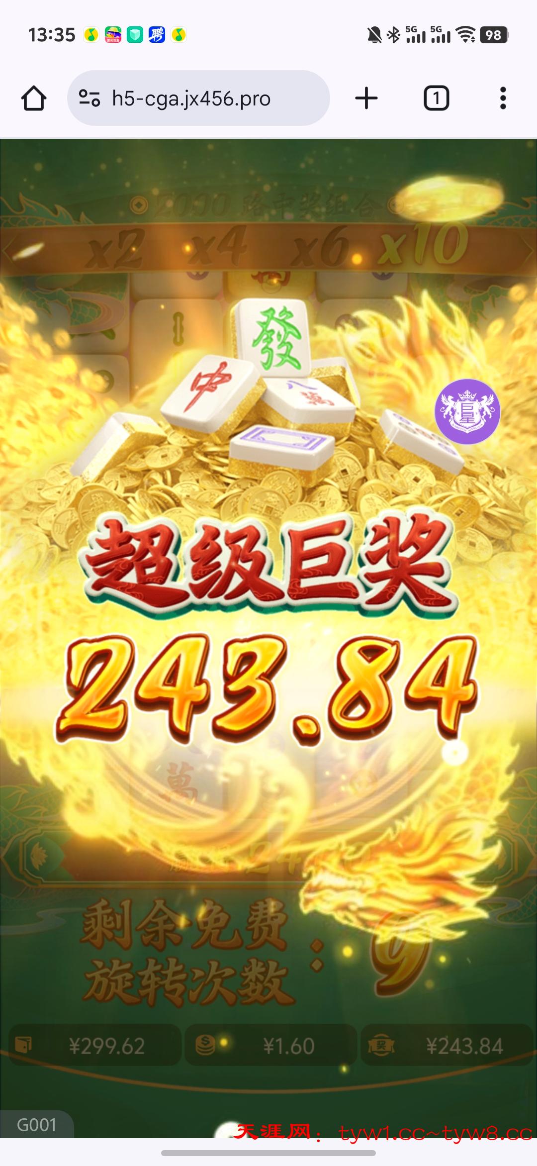 100+100最高打到230,就打了300多一点流水。进两次免费,一次2倍一次5倍