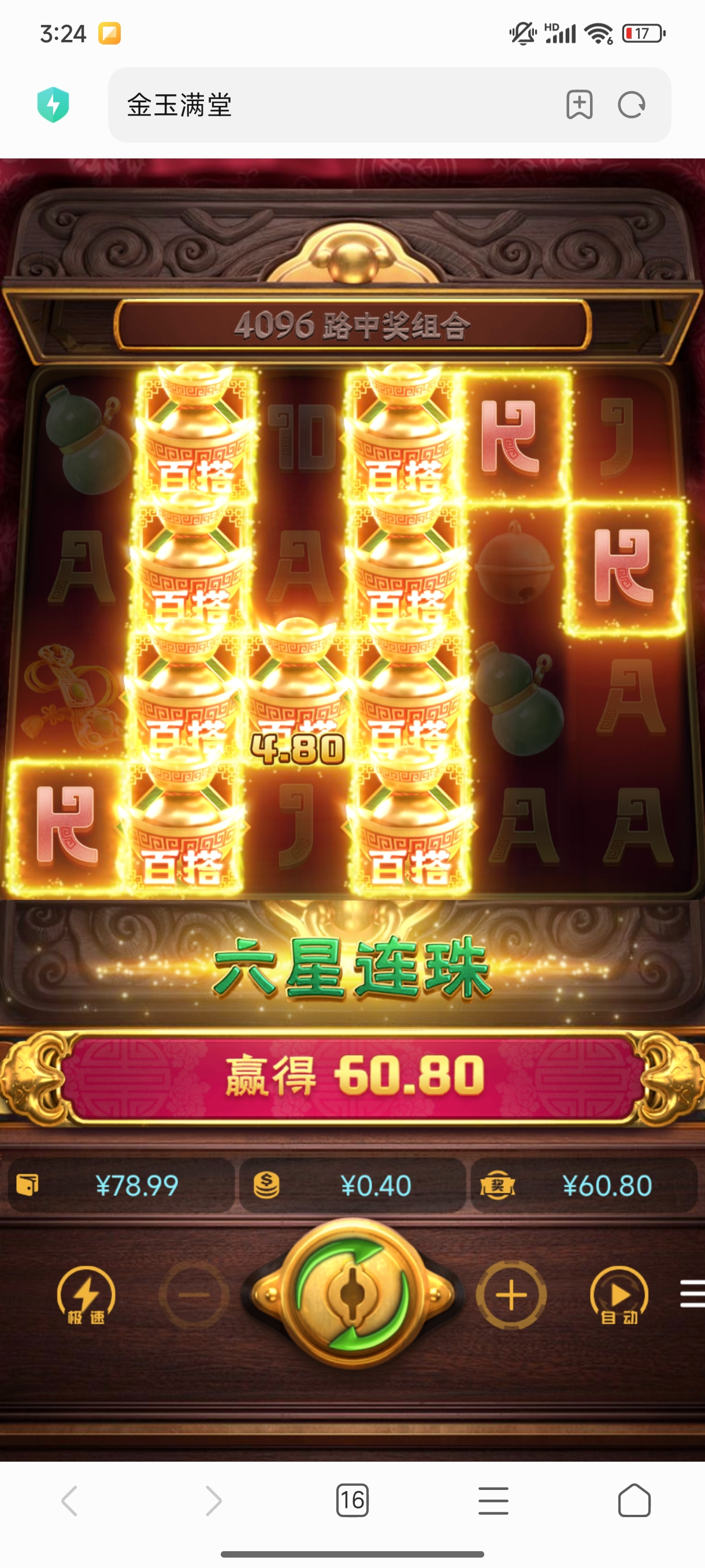 在社区里看到0051可以碰瓷18彩金,就试着点了进去没想到上一年我就已经注册过了,并且还有六块返水没玩,然后无聊就拿去玩pg了,差不多是换着玩,玩着玩着就110块了