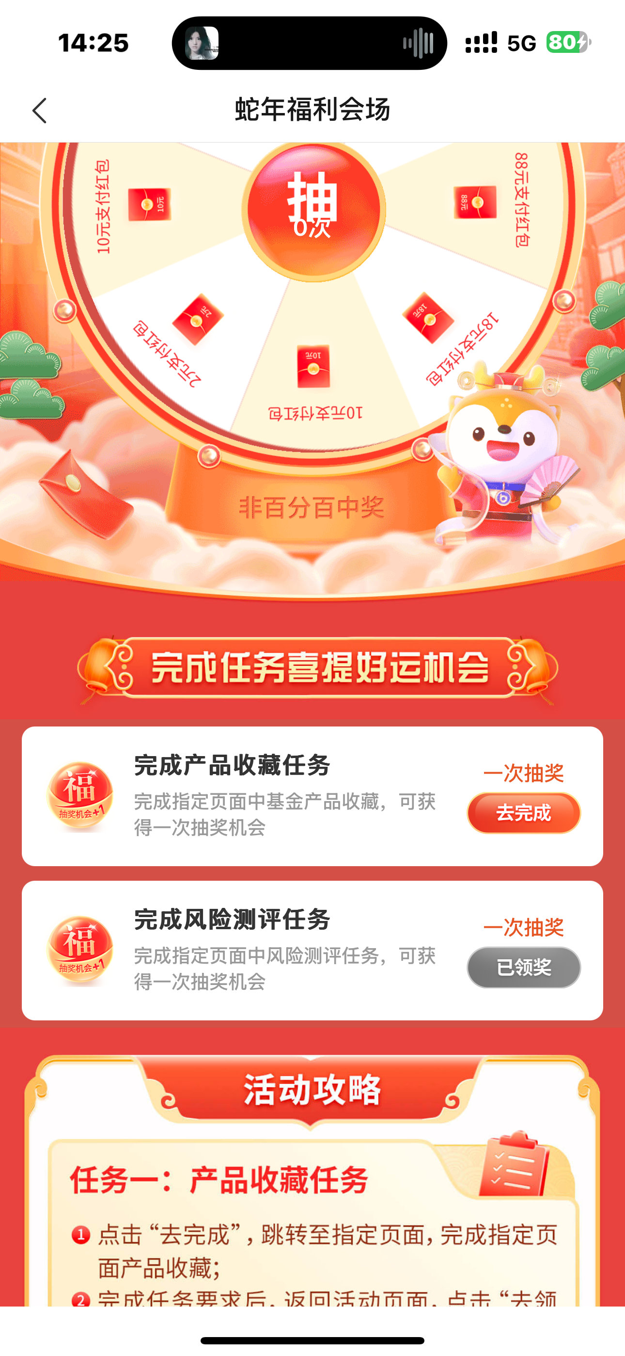 交通搜索蛇年福利会场就可以了,完成风险测评满18就可以