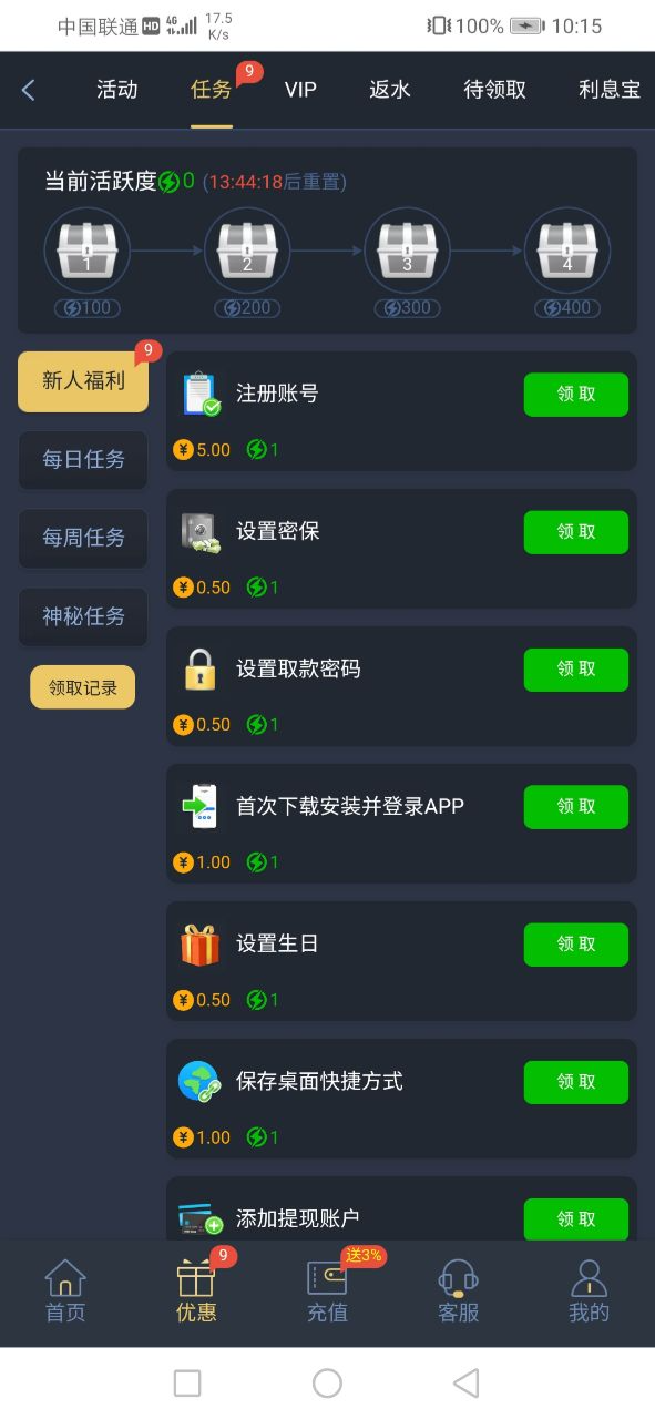 完成任务送9.88 10块进游戏