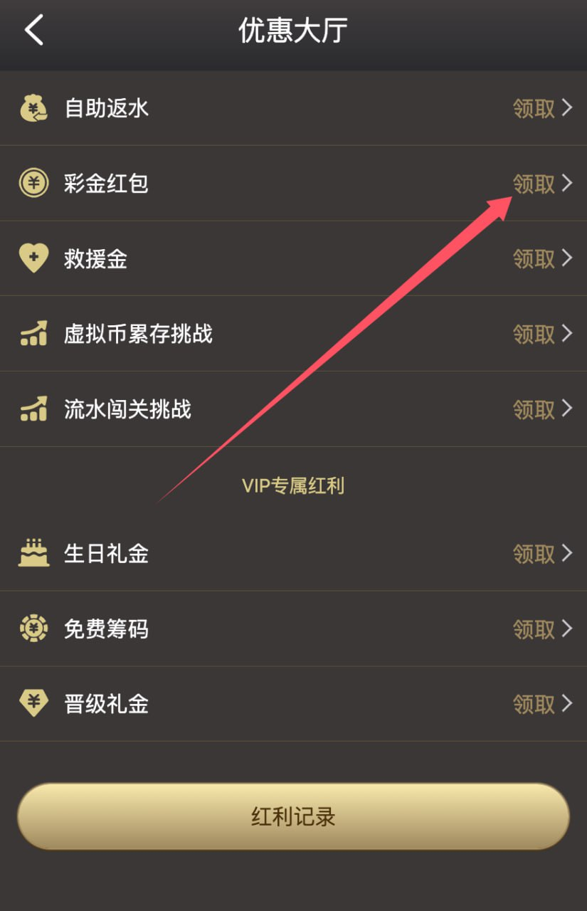 点击我的 优惠大厅 彩金红包自助领取