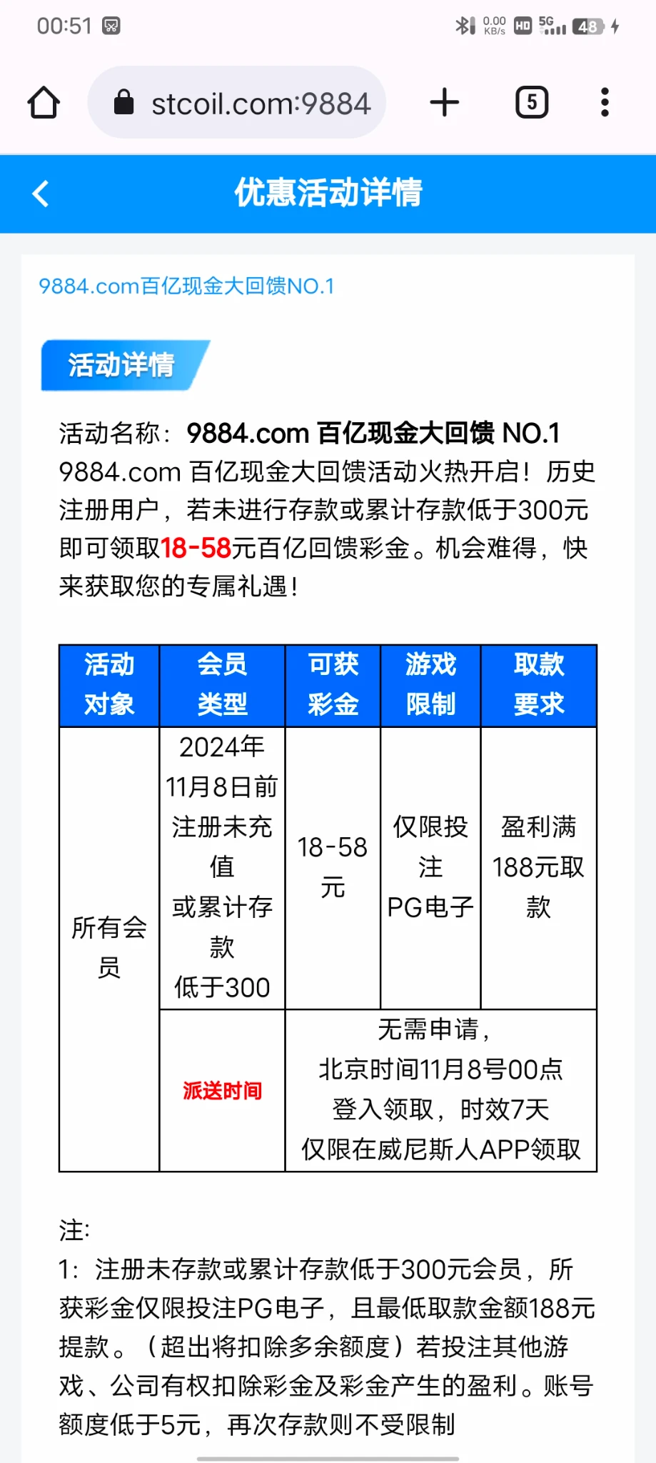 8号前注册未充值登录有18,存过300的58,出款游戏限制看图