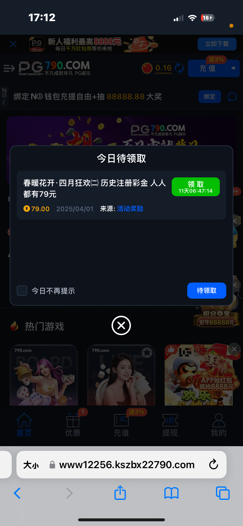 这平台麻将太假了,之前输一点不玩了一直短信来,送79没提,两下没了