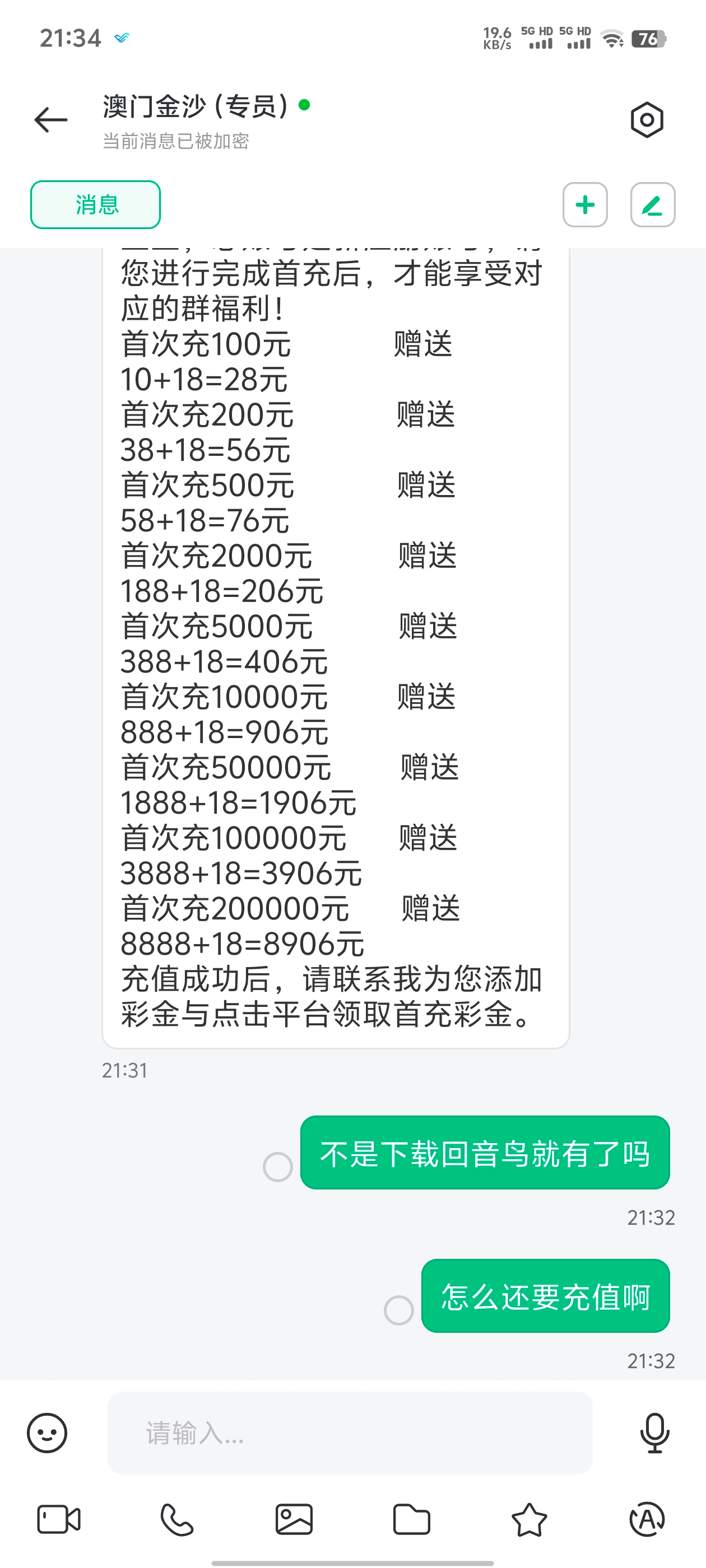 有金沙号的老哥可以去下载注册一个回音鸟,找那个客服申请18注册彩金,没有号的老哥也可以去注册一个金沙号再去找客服要