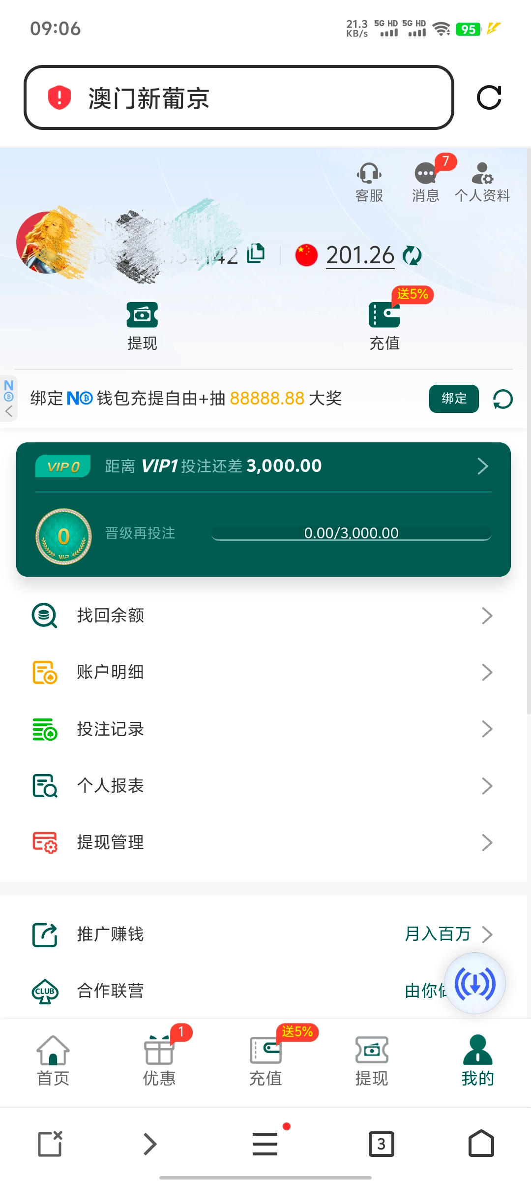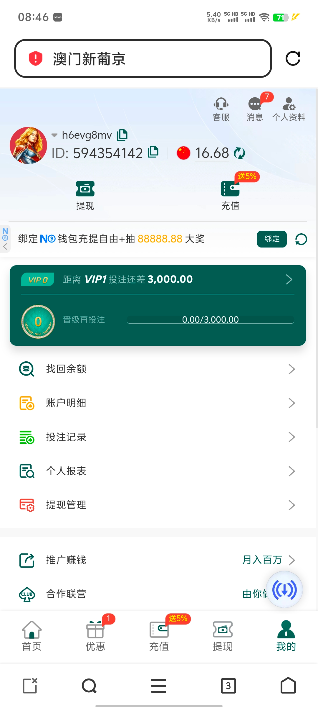 收到短信去绑定手机号自己申请