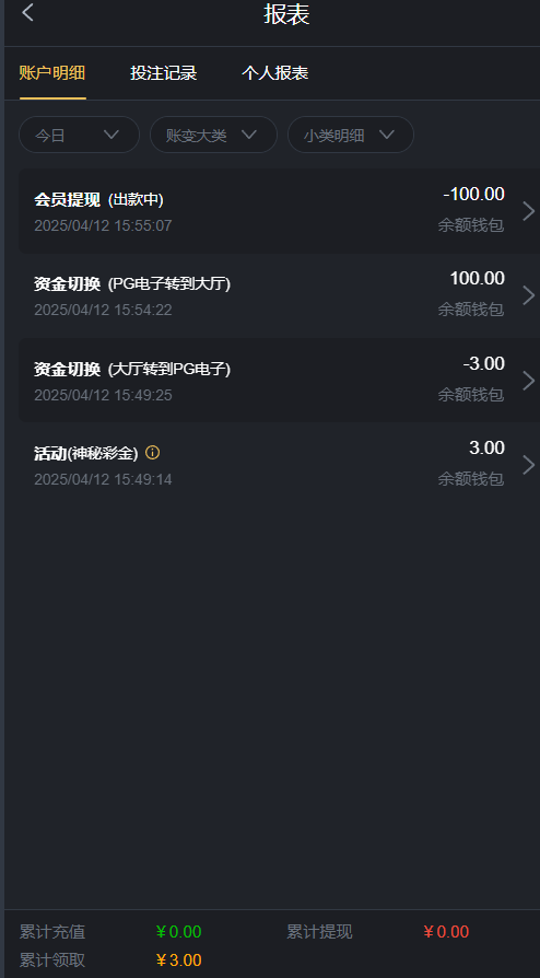 出款情况:自测