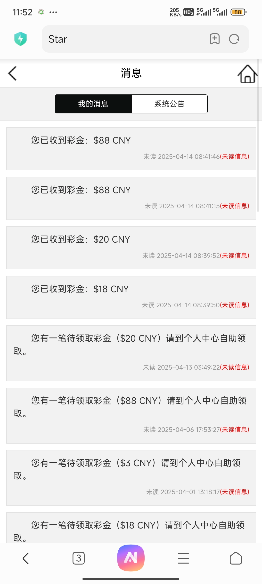 a120644415 今天微信特邀星际送了88 打到200提现两个小时还没到账 是不是黑了