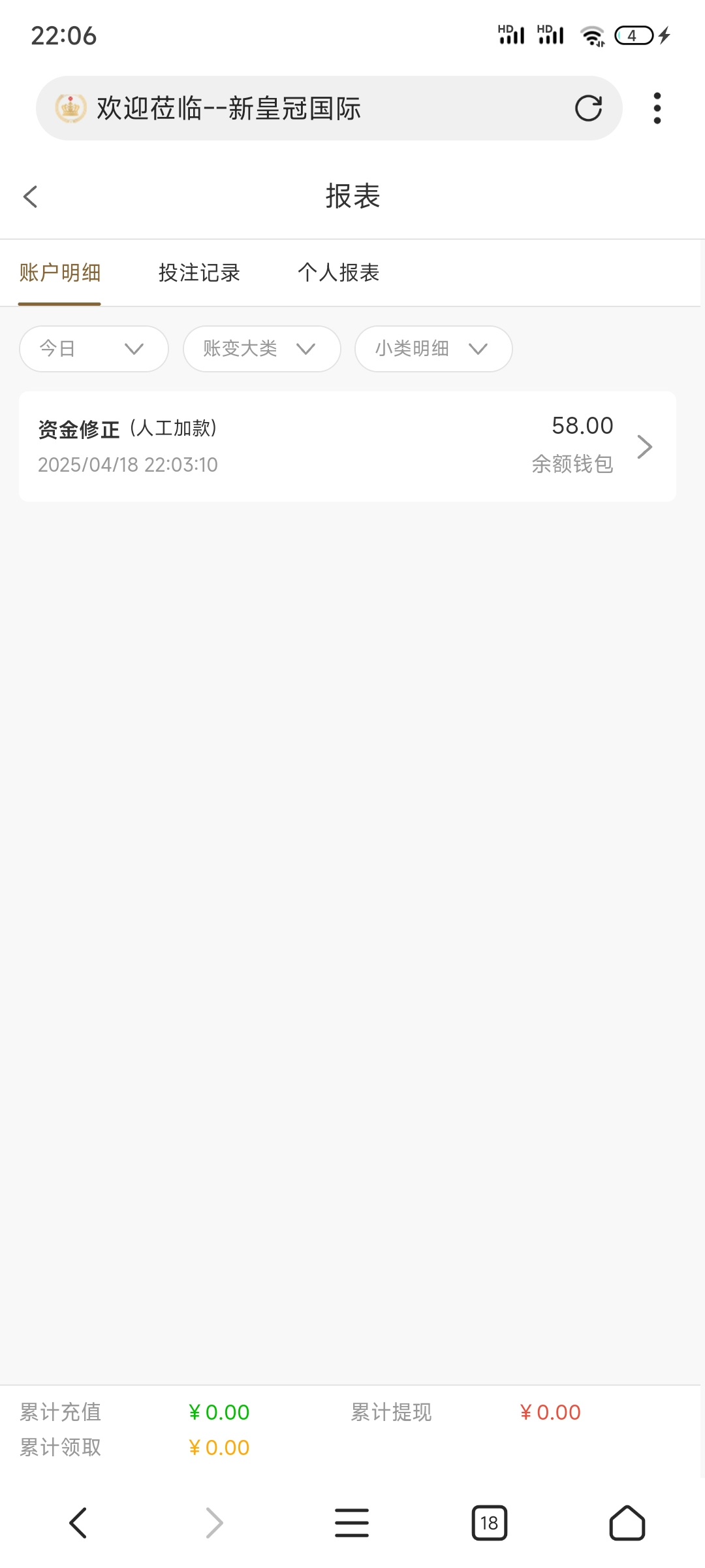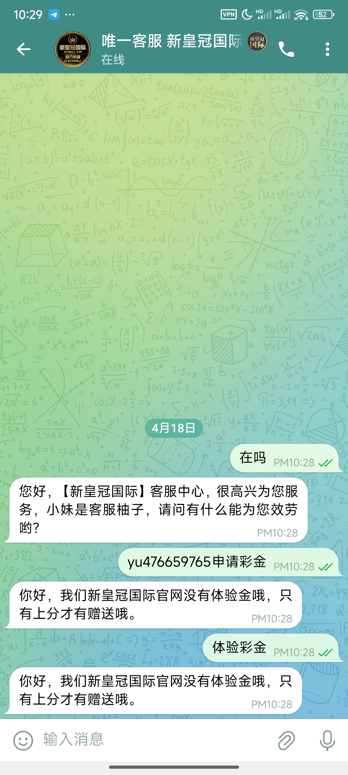 你好,我们新皇冠国际官网没有体验金哦,只有上分才有赠送哦。