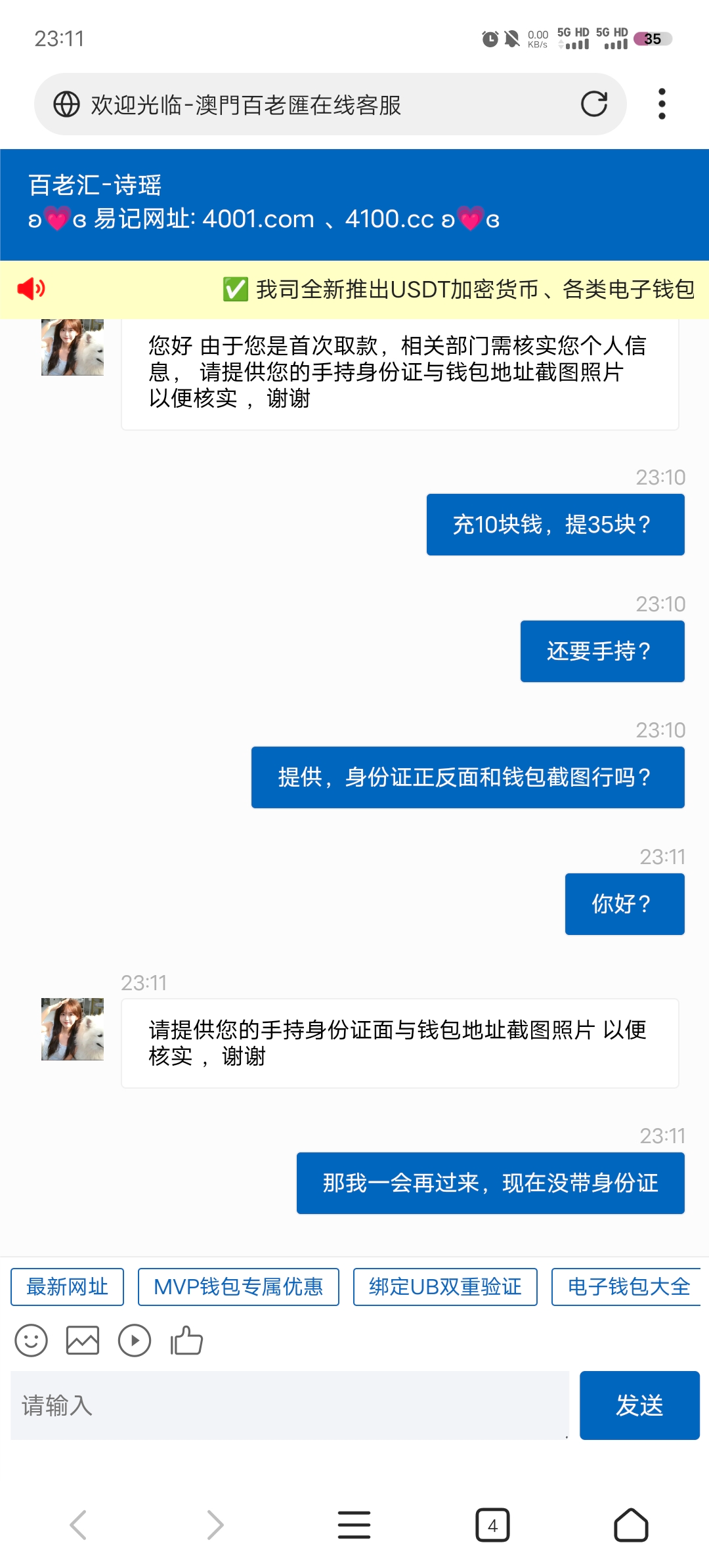 想打个以小博大的,结果显示我多ID,然后直接去拉垫子,打了点流水就提款了,充10块下35,提款手持,我艹了。可算把我恶心死了