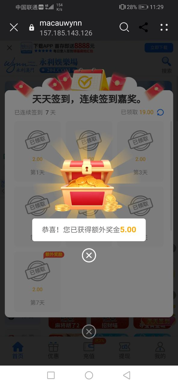 每天免费签到2块 第七天2+5块