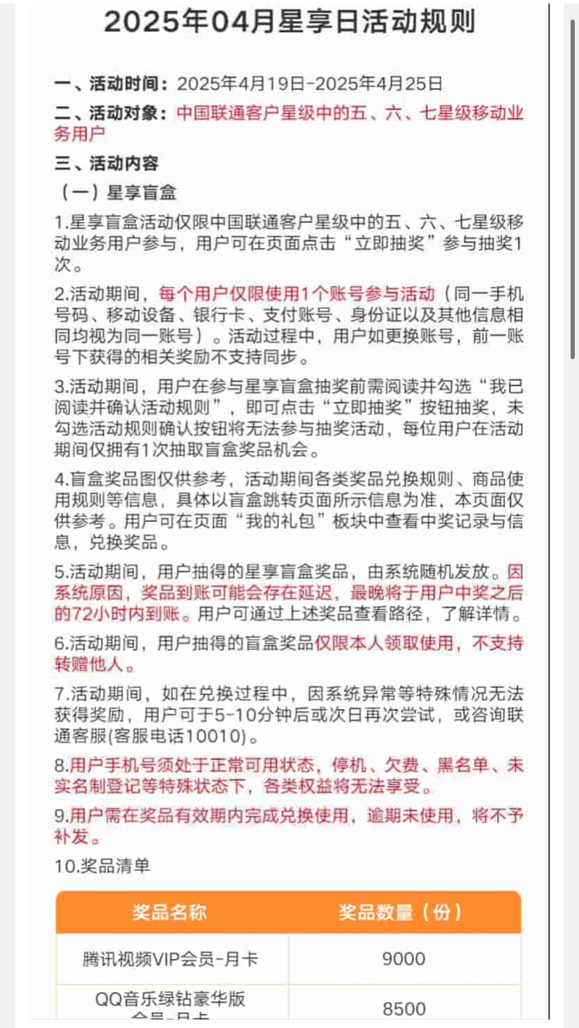 【联通五星用户】—✅— 星享日