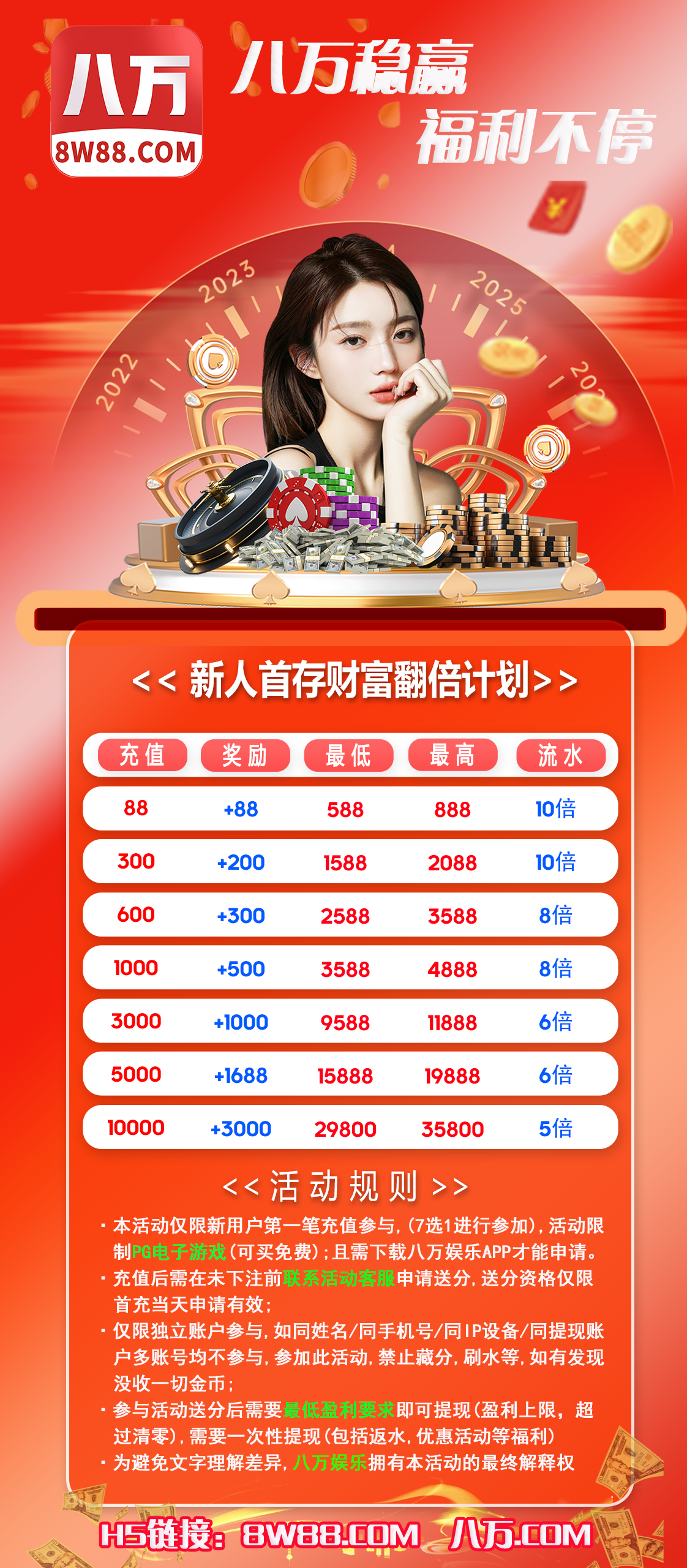 限制:5水~10水,最低提款 588、1588、2588、3588