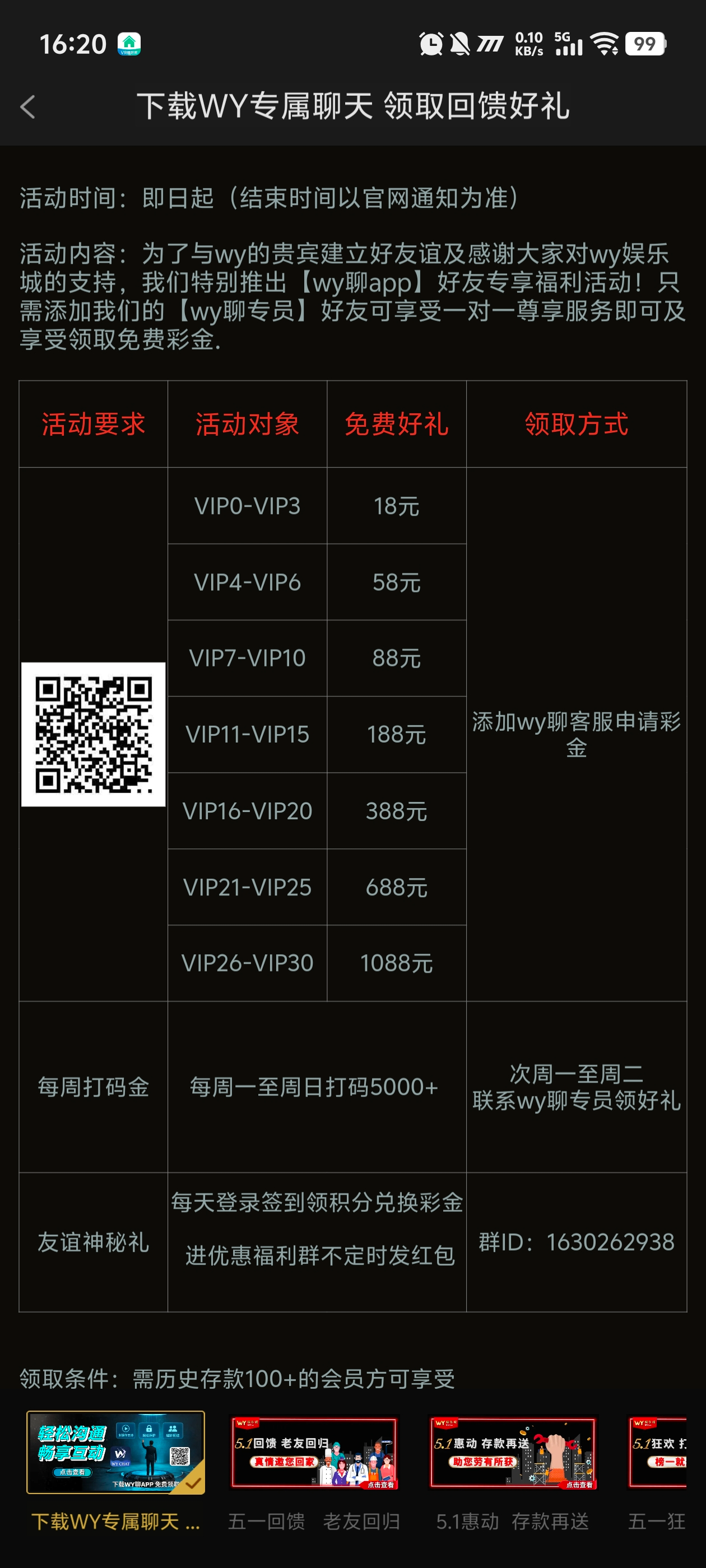 万赢,下载专属聊天软件就送,需要历史充值满100+