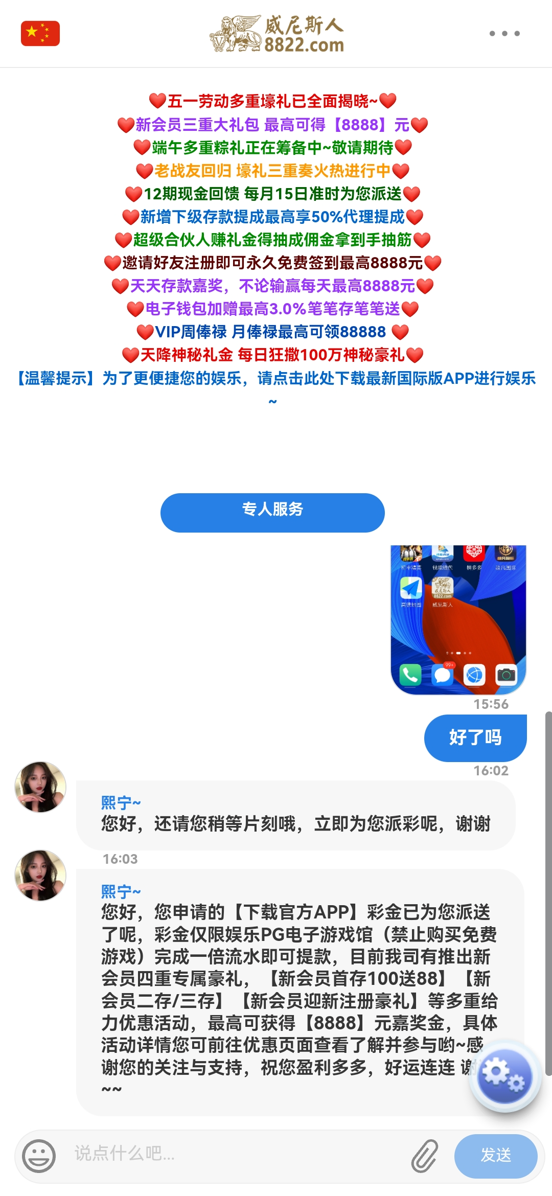 说什么5月8号之前注册的才送