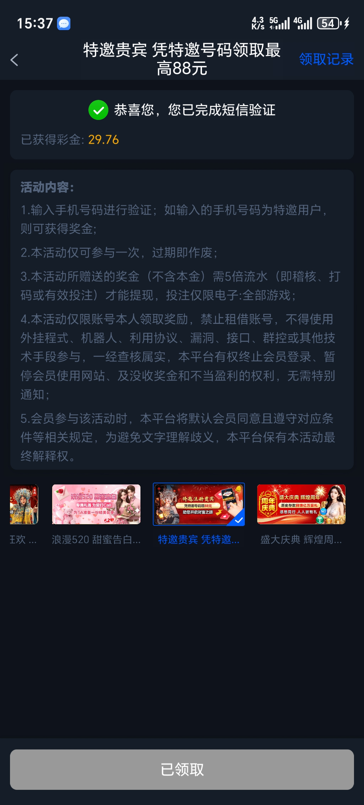 领到了29,到240,编辑帖子的时候已经出款了