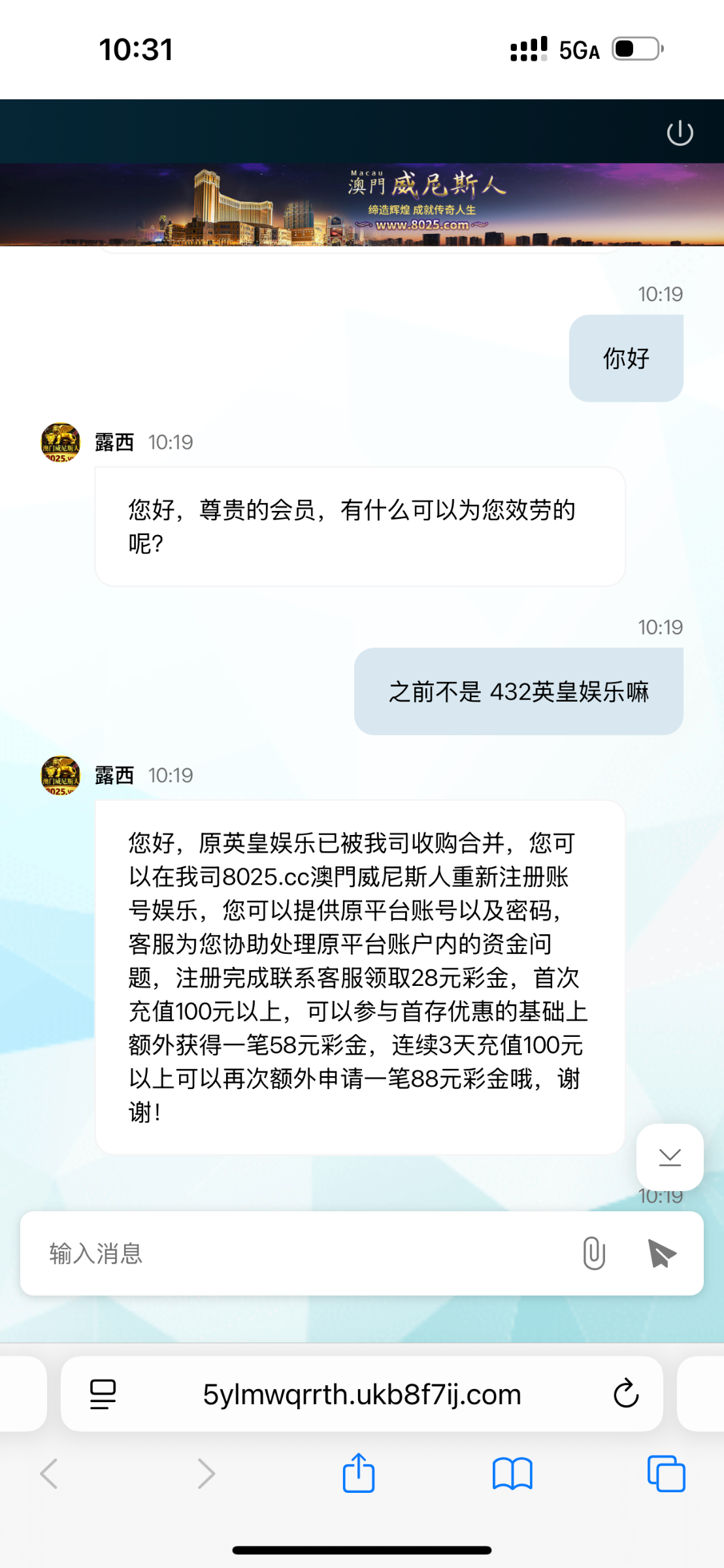原来的432英皇娱乐升级为威尼斯人8025.com,升级彩金28