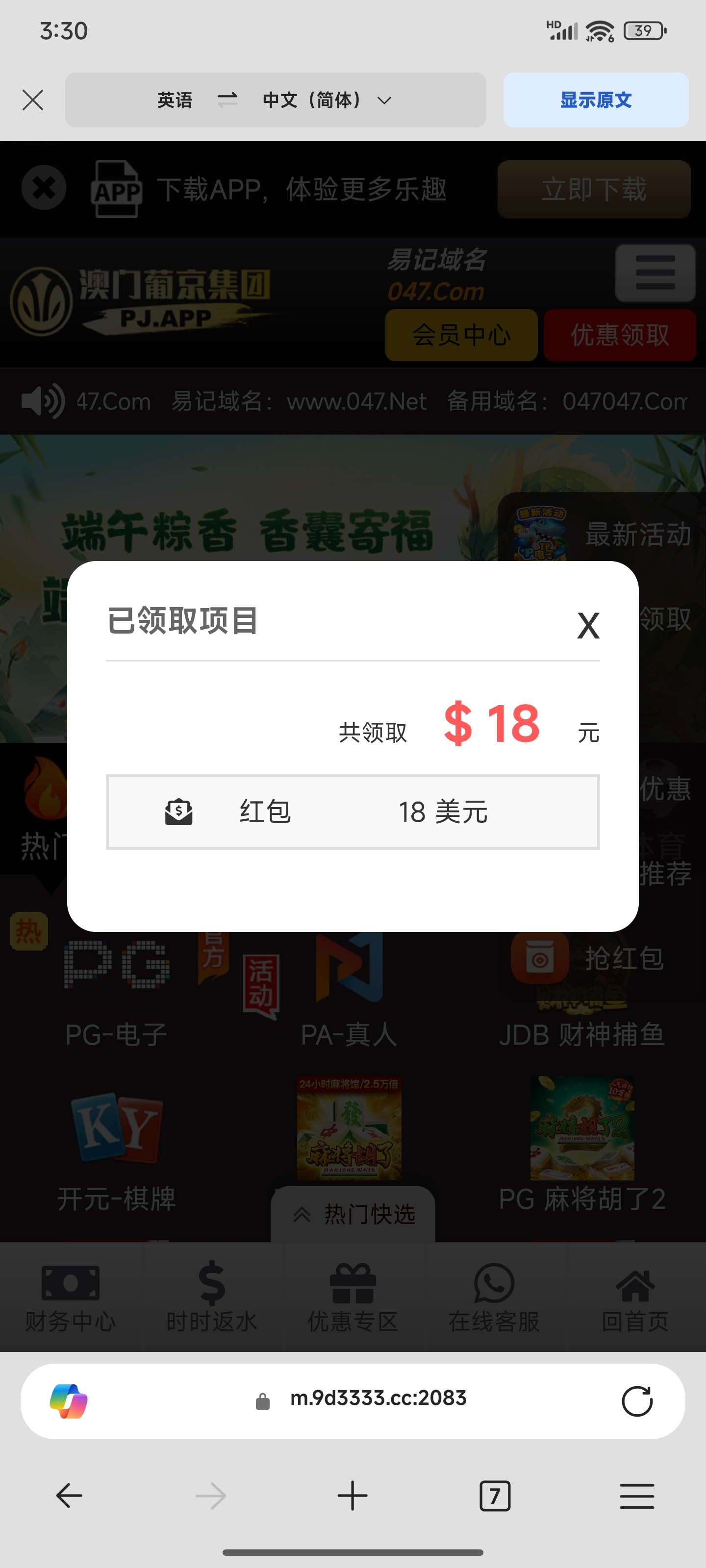 没充值领到了