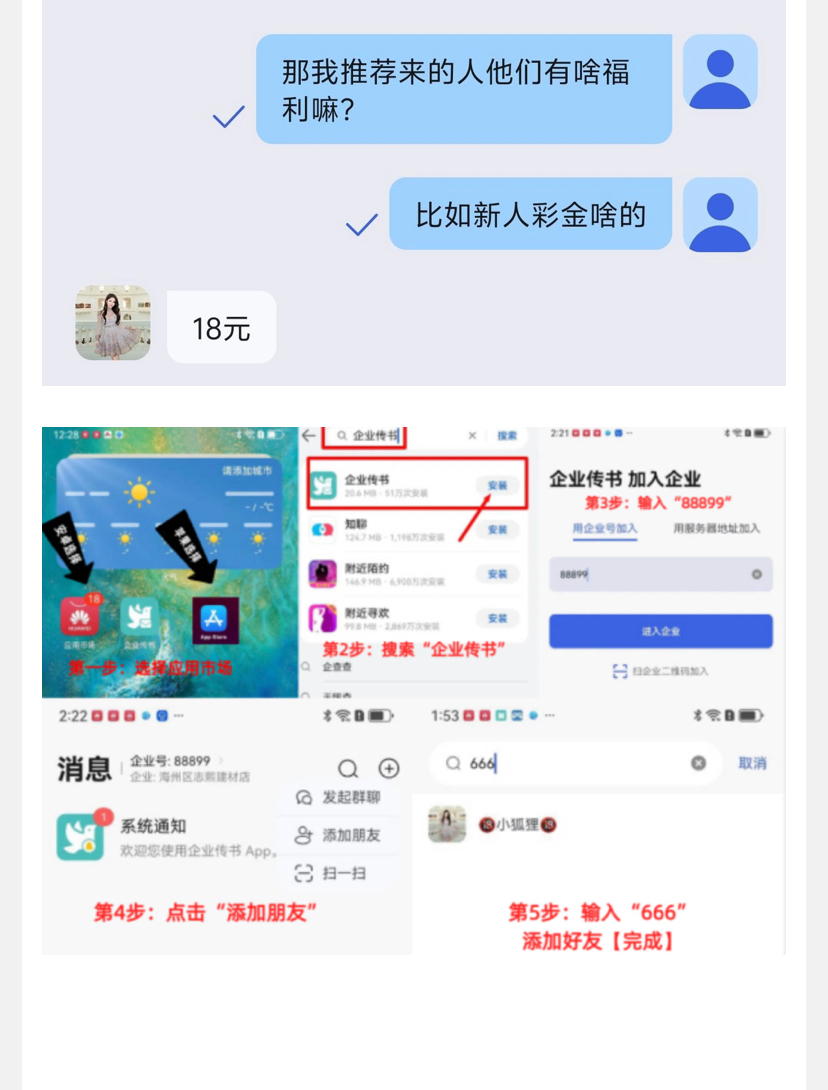应用商店下载企业传书,然后输入88899注册登录,搜索666添加好友,备注2148推荐即可领取18彩金,同设备多ip不送