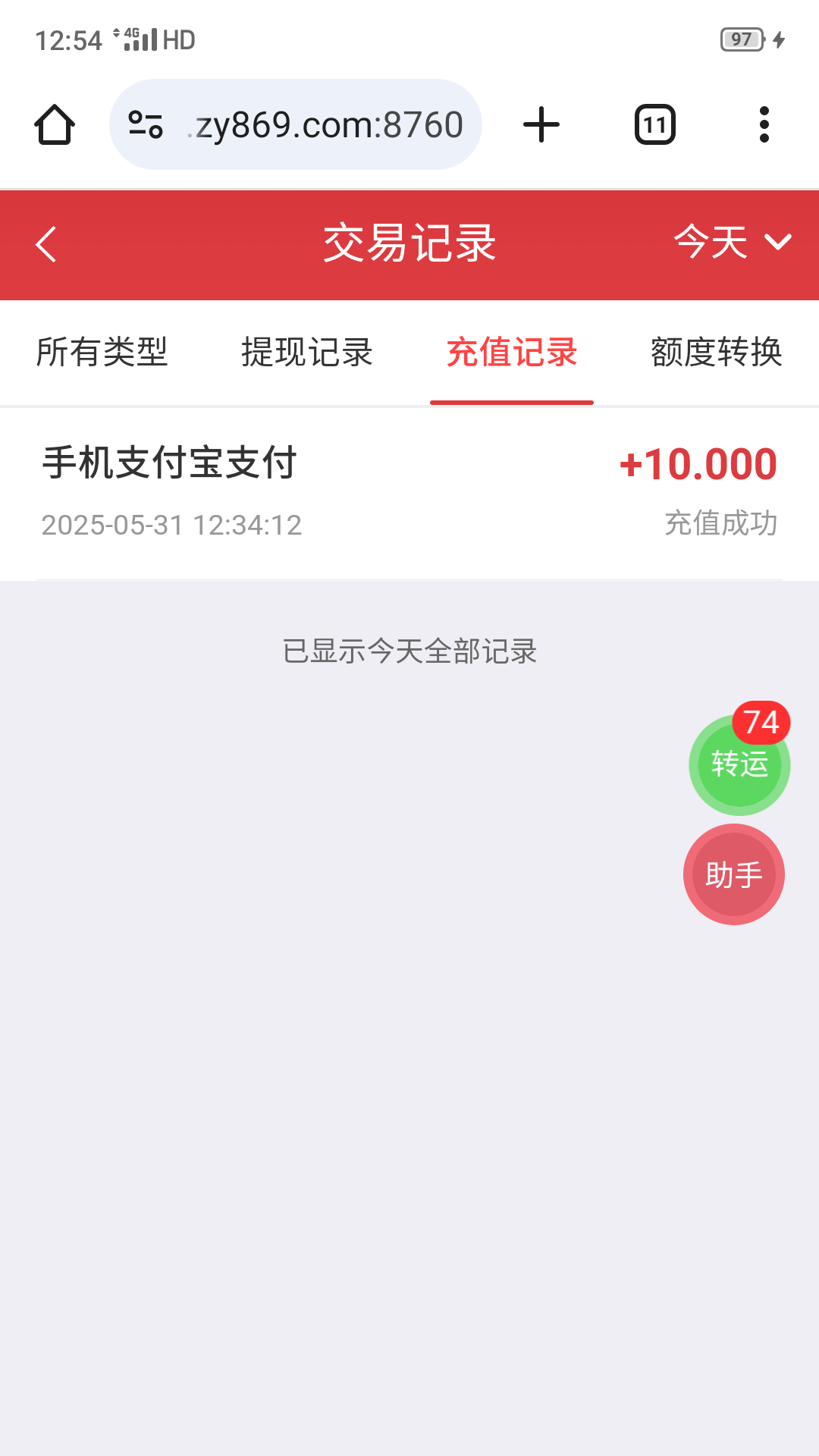 到账了,可以