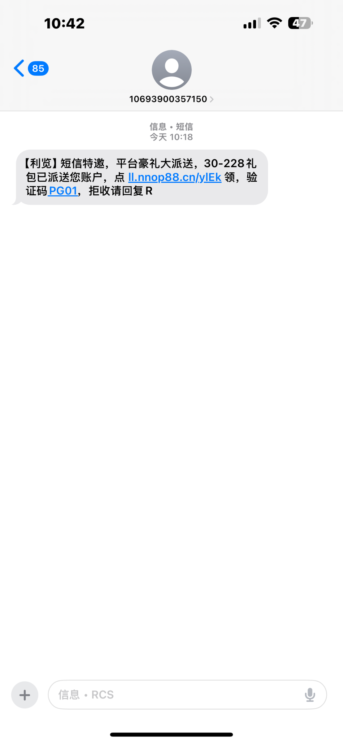 【利览】短信特邀,平台豪礼大派送,30-228礼包已派送您账户,点 ll.nnop88.cn/ylEk 领,验证码PG01,拒收请回复R进去绑定银行卡和手机号码是特邀送30