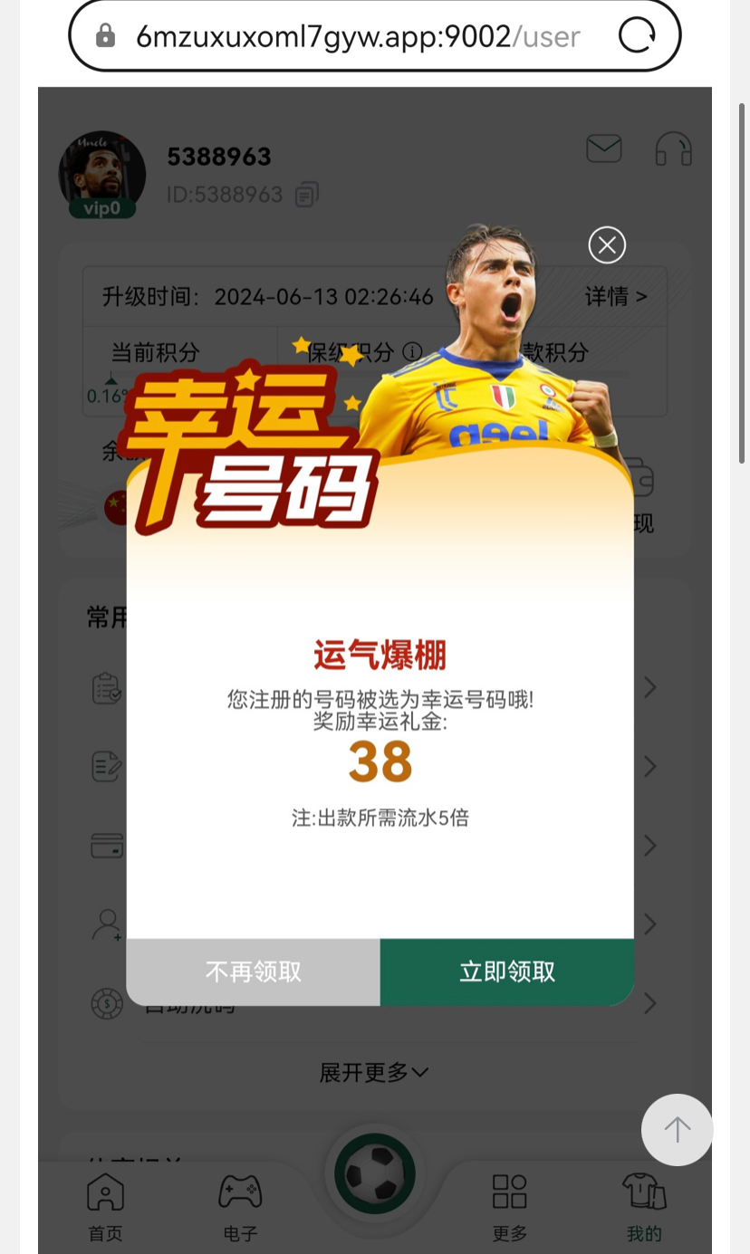 闲着没事登入上去,彩金就弹出来了我是去年四月特邀注册的,到现在没充过一毛钱,又给我送了38  网址 11365.com