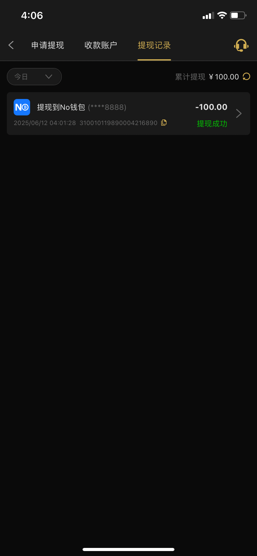 提现到了