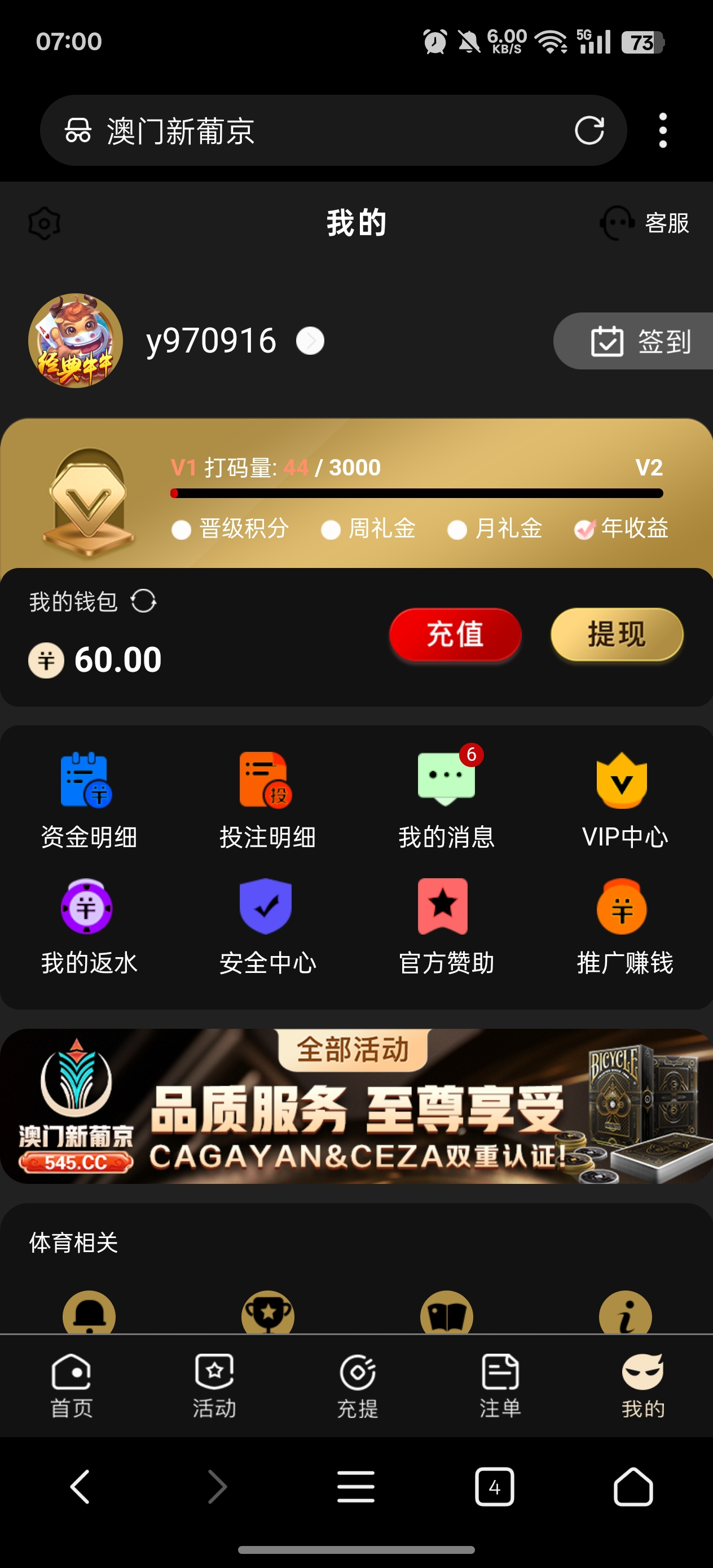 今天打电话来说有电话彩金,但是一登上去就看见五月份的时候送了3次30的,你们有号的去看下有没有,刷了一水提现已到账,电话网址 97774.cc