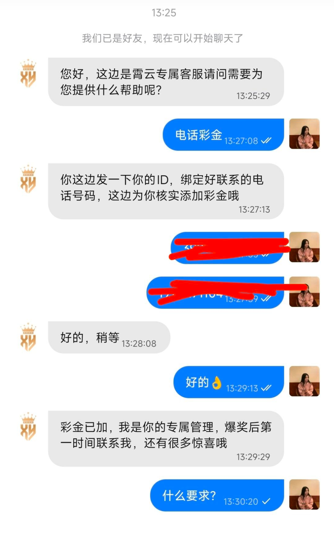 我是接到电话了,让联系在线客服,说的回放彩金!100提款 网址1002.my